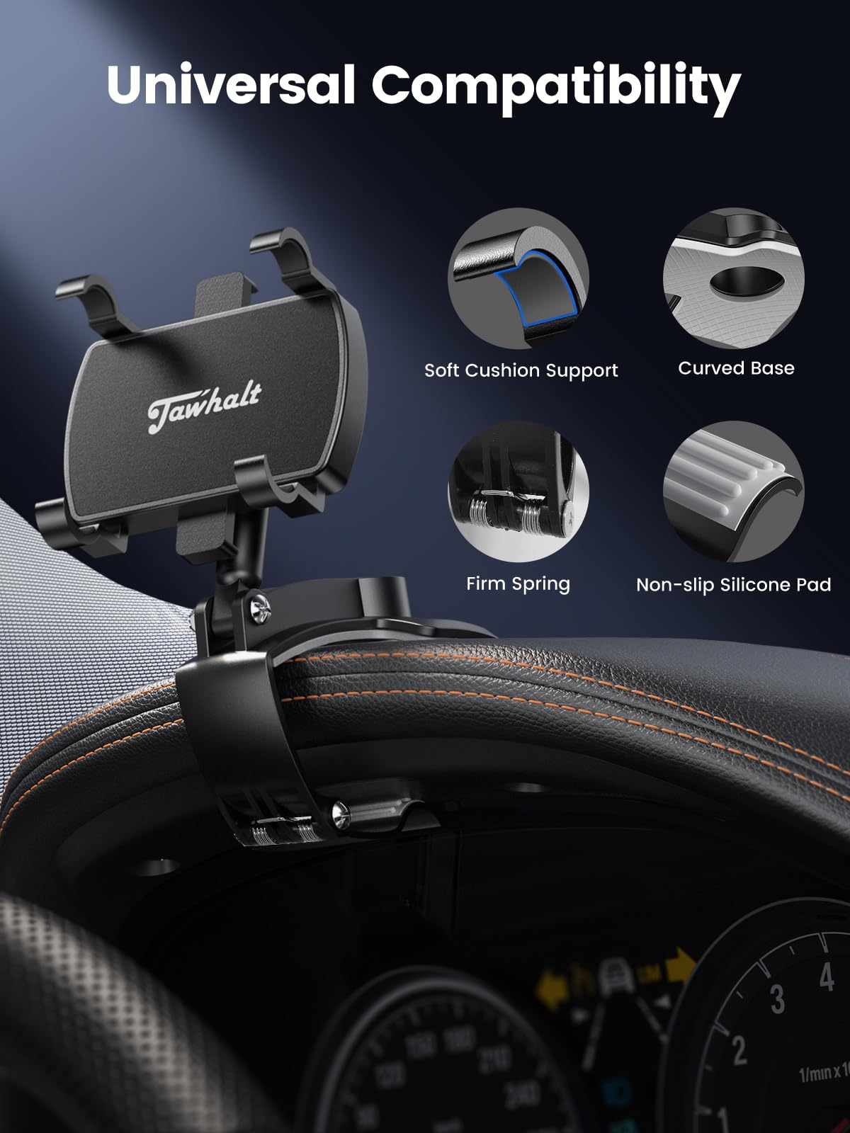 Jawhalt Car Phone Holder For Dashboard Cell Phone Mount For Car 360 Degree Rotation Clip Design Compatible With All Cell Smart P