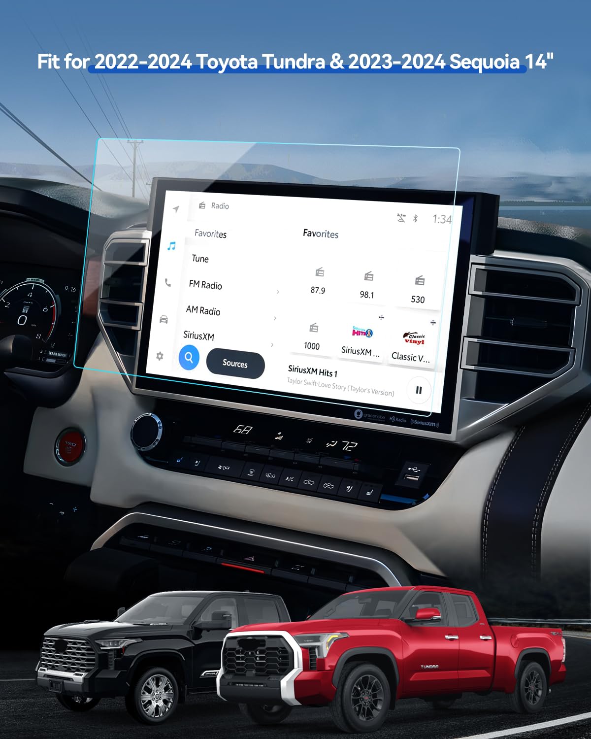 Lantu 2Pcs Car Screen Protector For 2022 2024 Toyota Tundra Accessories& 2023 2024 Sequoia 14'' Nano Gps Navigation Touchscreen