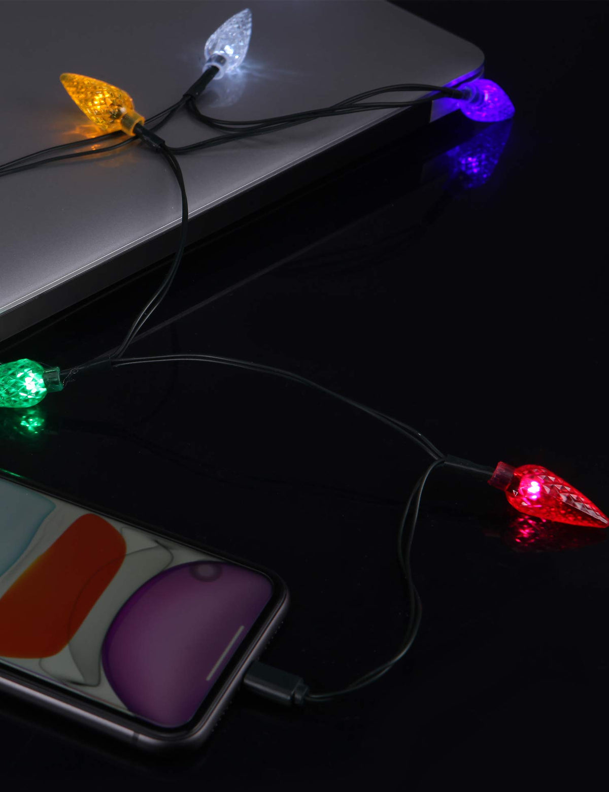 Ten Different Led Lights Which Shaped Like A String Of Classic Christmas Lights Will Shine When It Is Charging.