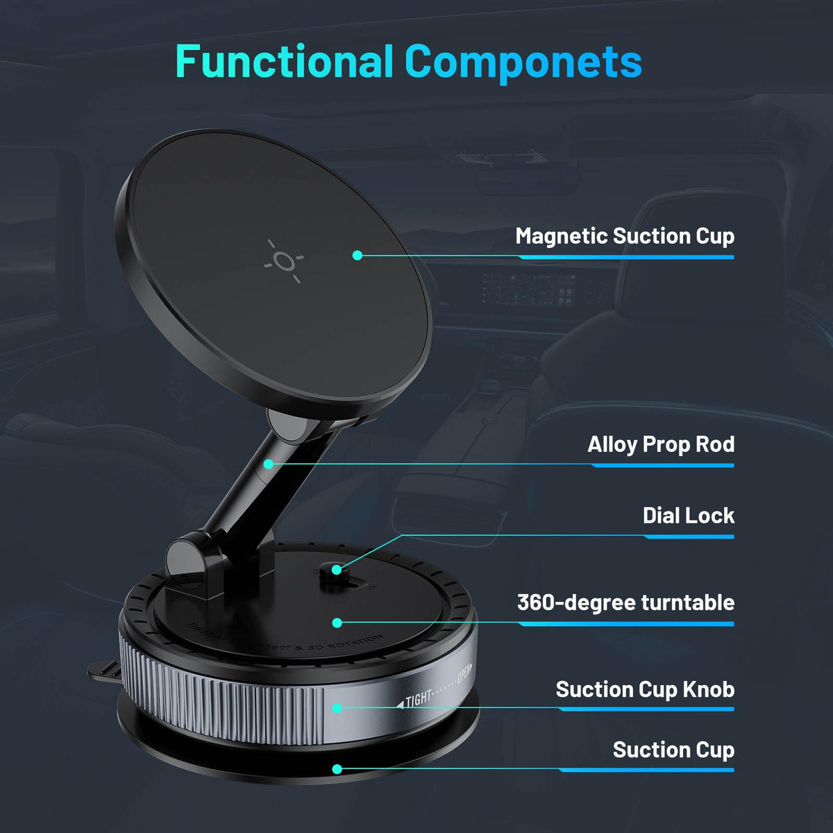 Magnetic Phone Holder For Car, Suction Cup Phone Mount, Foldable Vacuum Magnetic Phone Holder With Adjustable Swivel Lock, 360Ad