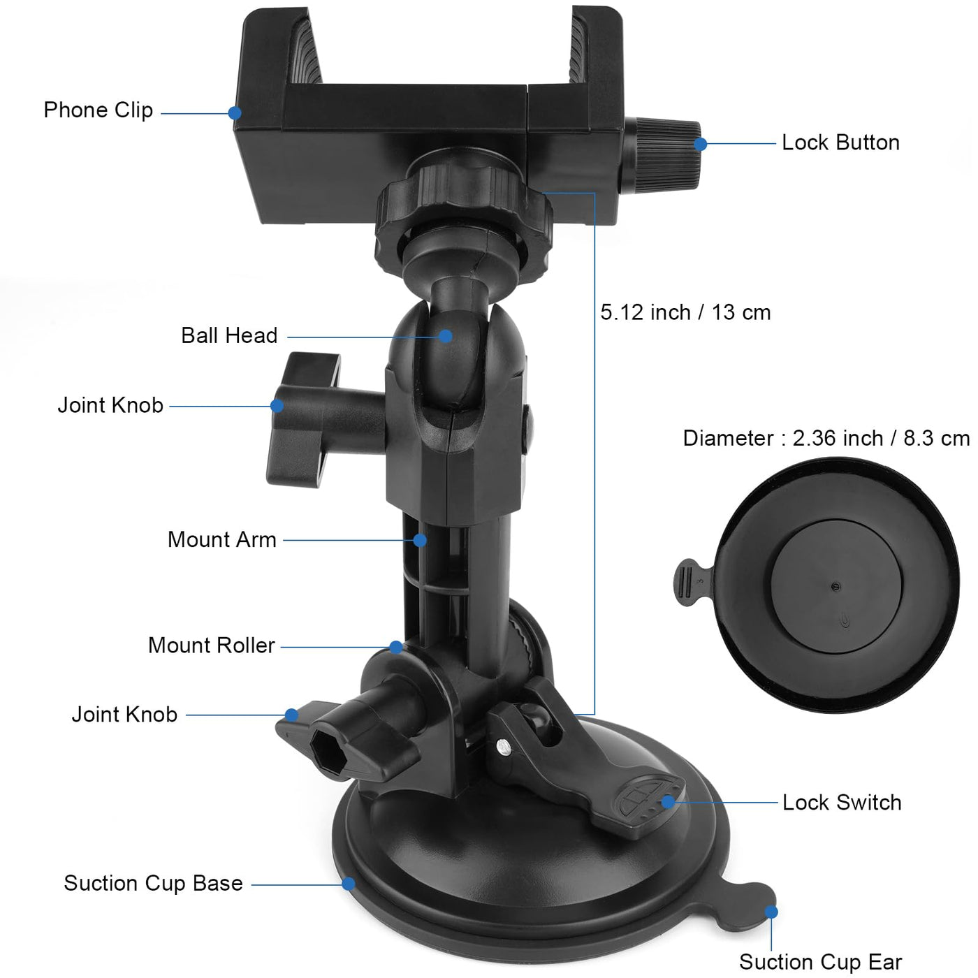 Mippko Suction Cup Phone Mount Attach To Tile Wall / Mirror / Glass / Wooden / Metal
