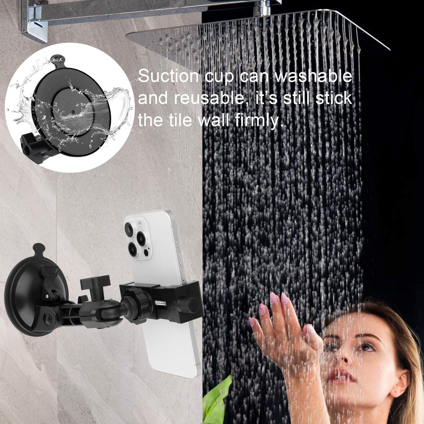 Mippko Mirror Shower Phone Holder,Suction Cup Phone Stand For Bathroom/Tile/Wall/Mirror/Glass/Wooden/Metal,360 Adjustable Mount