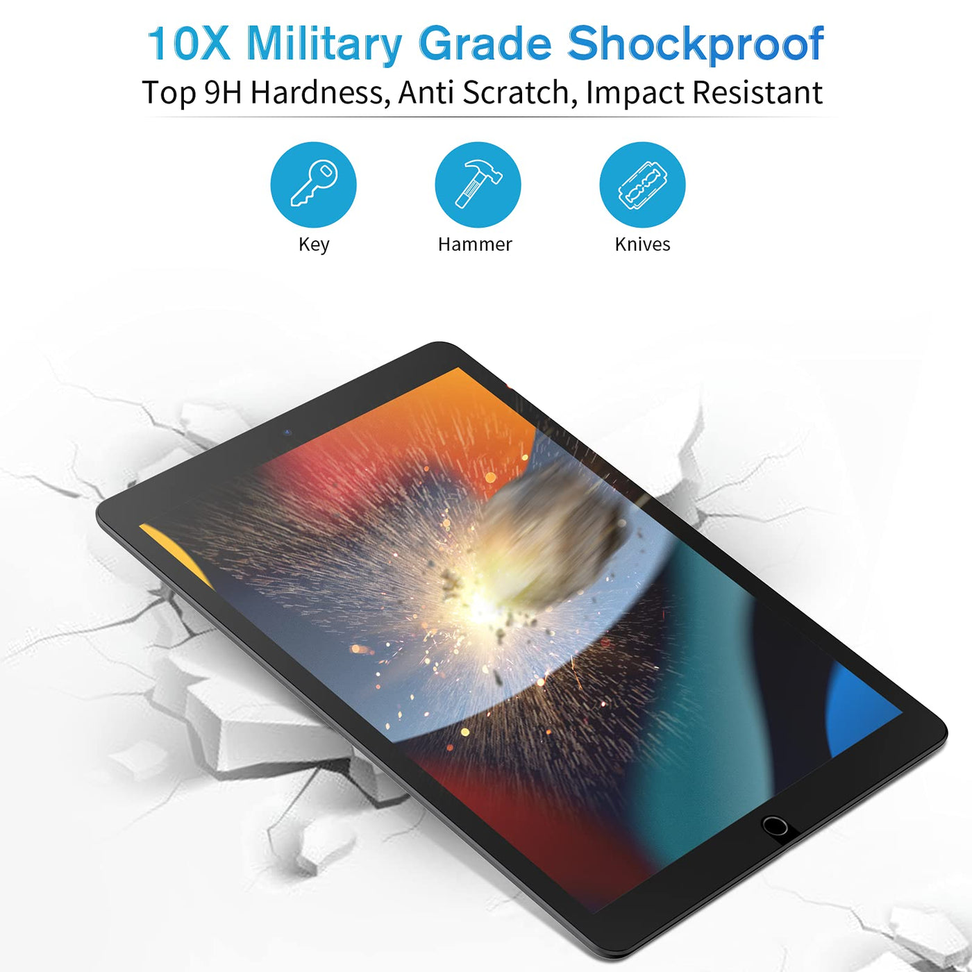 ??Perfect Compatibility? Specially Designed For Apple Ipad (9Th Generation, 10.2-Inch, 2021), Ipad (8Th Generation, 10.2-Inch, 2020), Ipad (7Th Generation, 10.2-Inch, 2019), Ipad Air (3Rd Generation, 10.5-Inch, 2019), Ipad Pro 10.5-Inch (2017). Precise Laser Cut Tempered Glass And Perfect Fits, Compatible With All Kinds Of Cases In The Market. | ??Fail-Proof Installation? Comes With Innovative Auto Alignment Kit Which Makes Perfect Alignment A Breeze. Easy Quick Installation, Bubble Free And Not Easy To Fall Off. Online Installation Video Is Also Available. | ??Military Grade Shockproof And Shatterproof? Made From The Premium Tempered Glass, Featuring Maximum Protection From Scratches, Scrapes, And Bumps. Prevents The Glass From Shattering When Meeting Heavy Impact. | ??Ultra Hd Crystal Clarity? 100% Transparency Invisible Ultra Hd Clear Tempered Glass, Restore The True Color Of The Screen, Enjoy The Original Clarity Of The Ipad. | ??Lifetime Warranty? Package Includes: 2* Ipad 10.2/10.5 Inch Tempered Glass Screen Protector, 2* Patch Installation/Cleaning Kit, 1* Squeeze Card, 1* Sponge Mat, 1* User Manual. Free Replacement Or Refund For Any Quality Problems And Installation Errors. Professional Customer Service Is Always By Your Side, Fast Reply Within 24 Hours.