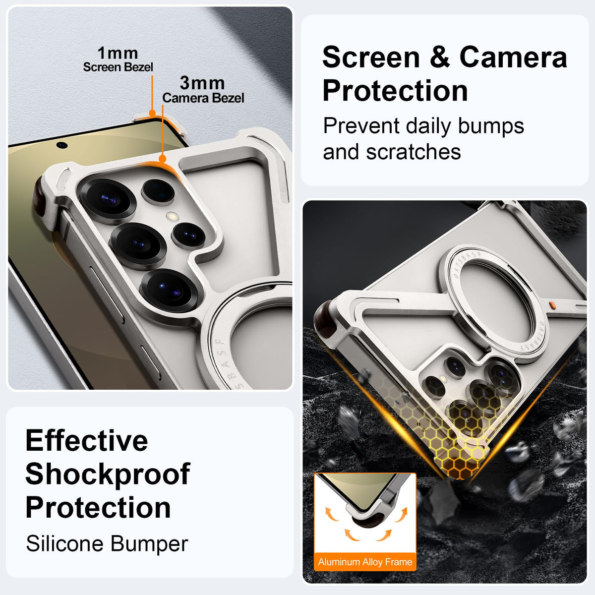 Nifbang Z Shape For Samsung Galaxy S25 Ultra Phone Case With Magsafe,Frameless Metal Magnetic Ring Stand,360Rotating Kickstand P