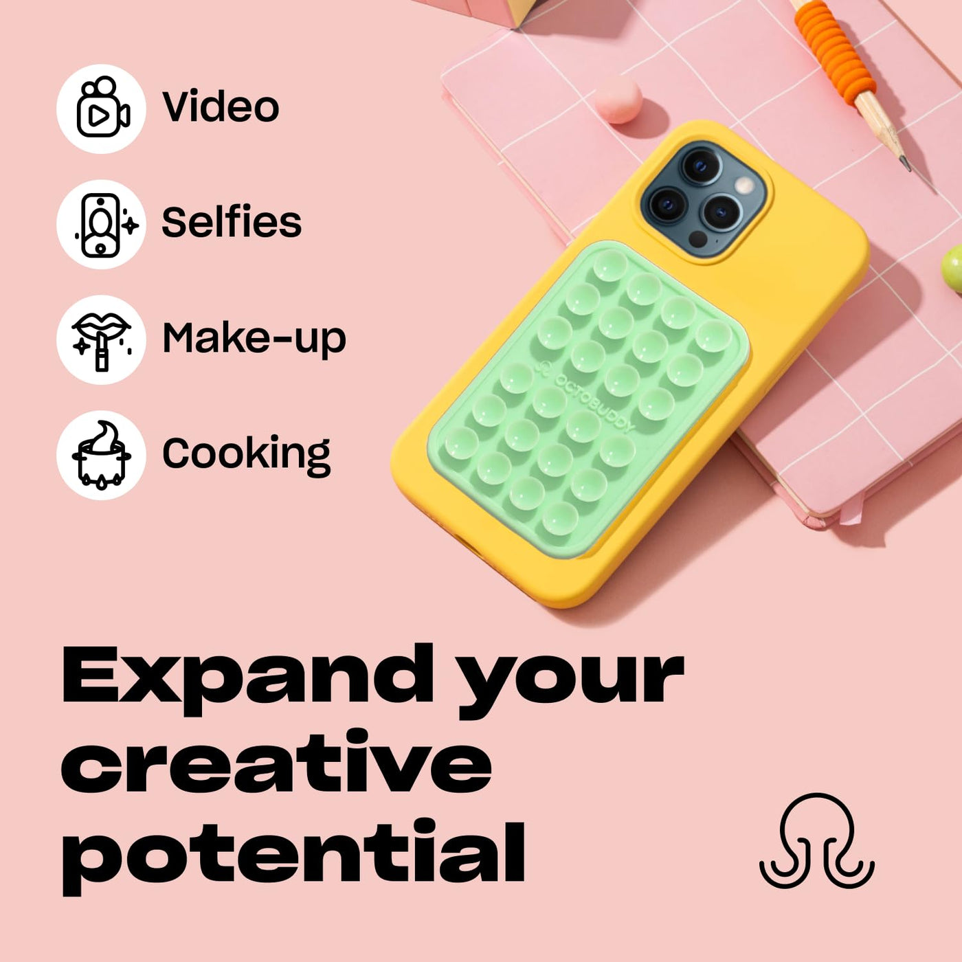 Octobuddy Max Silicone Suction Phone Case Adhesive Mount - Hands-Free, Strong Grip Holder For Selfies & Videos - Durable, Easy T
