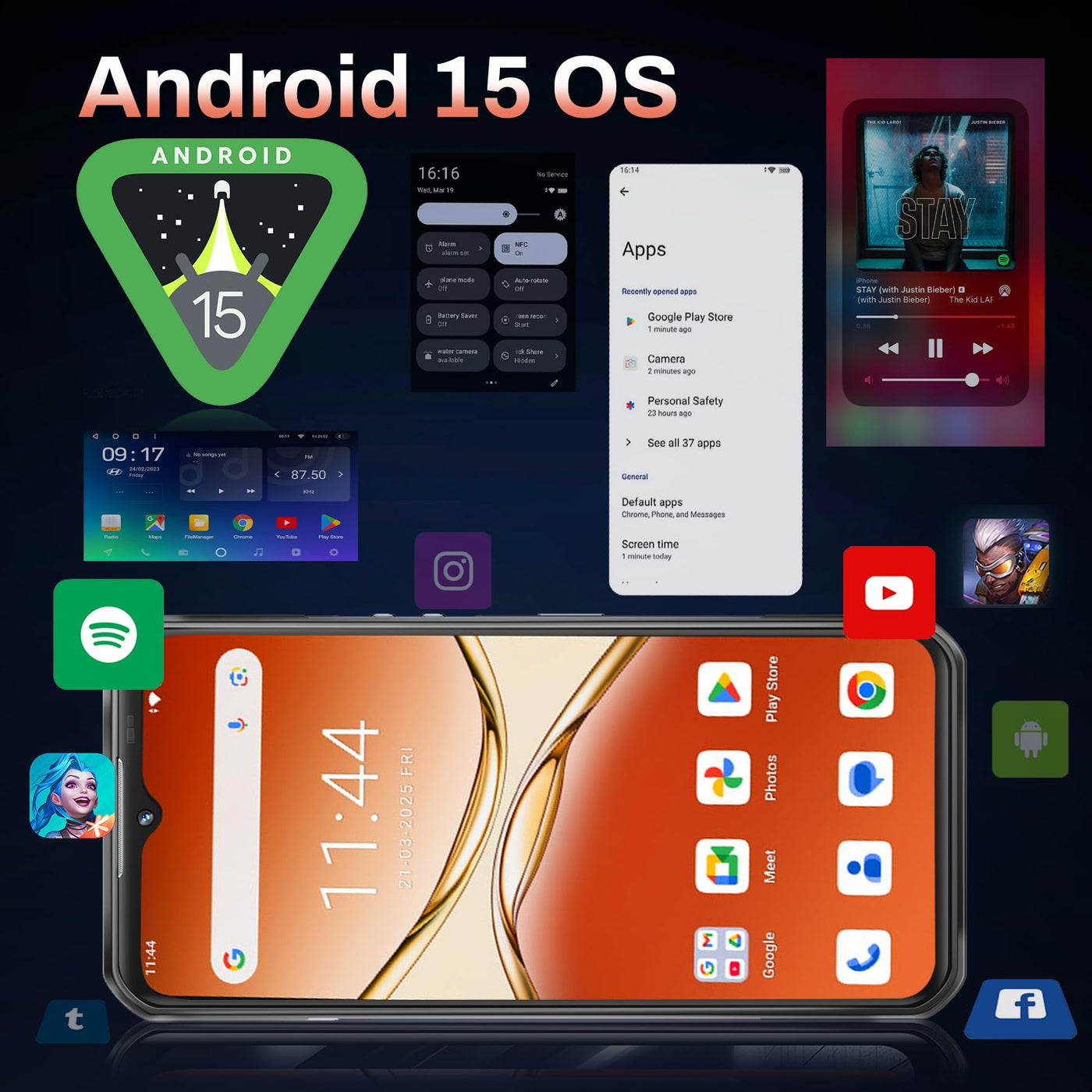 36Gb Ram + 256Gb Rom/Tf 2Tb & Android 15 &''Gemini'': The Oukitel Wp55 Rugged Smartphone Powered By The 5G Mtk Dimensity 7025 Octa-Core Processor And Equipped With Android 15 Operating System Ensures Smooth Performance And Enhanced App Speeds, All While Providing Robust Privacy And Security Features To Keep Your Data Safe. And Is Equipped With Gemini Ai Assistant To Make Daily Tasks Easier. Boasting An Impressive 36Gb (12 + 24) Ram And A Spacious 256Gb Rom Expandable Up To 2Tb, It Allows For Smooth Simultaneous Operation Of Multiple Memory-Intensive Applications And Provides Ample Storage Space.