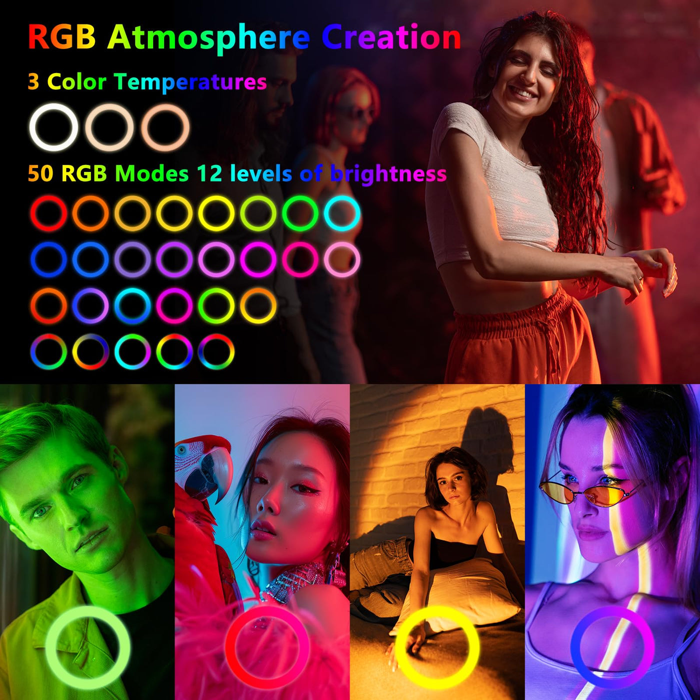 - Multiple Color Modes: Customize your lighting with 3 color modes—warm, cool, and natural—each featuring 12 brightness levels. Additionally, explore 50 RGB dynamic modes, offering a spectrum of colors to enhance your shooting environment.