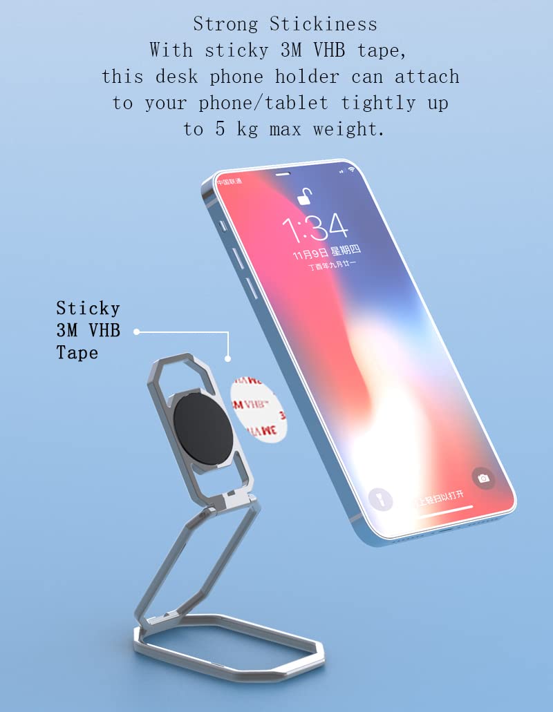 ?Wide Compatibility?This Phone Ring Holder Is Compatible With Almost All Smartphones, Tablets. It Can Be Used On Smooth Plastic, Metal, Or Most Phone Cases. Note: The Ring Grip Will Not Stick To Glass,Leather, Liquid Silicone, Or Non-Flat Surfaces ?Ring Grip&Stand 2In1?This Phone Stand Can Be Used As A Phone Grip, A Table Kickstand. It Provides A Comfortable Grip For Your Fingers And A Secure Way To Hold The Phone, Preventing It From Slipping Out Of Your Hand While Walking, Hiking Or Taking Selfies.You Can Use It As A Portable Desktop Stand When You Are In A Meeting, Cooking, Exercising Or Watching Videos.Moreover When You'Re Driving, It Also Works Well With Your Magnetic Car Mount ?360Rotation & 2 Adjustable Arms?This Cell Phone Holder Boasts Excellent Stability, Allowing For Easy Adjustment And Rotation. The Iphone Ring Grip Can Be Used In Both Landscape And Portrait Modes. With 360Rotation And Two Adjustable Arms, It Provides A Multitude Of Viewing Angles For Your Convenience ?Strong Adhesive?Featuring Powerful 3M Vhb Adhesive, The Phone Ring Grip Can Be Securely Attached To Your Phone Or Tablet.Please Use It 24 Hours Later After Sticking It On Your Phone To Ensure The Grip Can Stick More Tightly ?Premium Materials?The Phone Kickstand Is Made Of Premium Zinc Alloy And Stainless Steel, Ensuring Robustness And Durability For Long-Lasting Use. If There Is Any Quality Issues With Our Iphone Grip Holder Please Dont Worry We Will Provide Customer Service To Solve The Problem Better