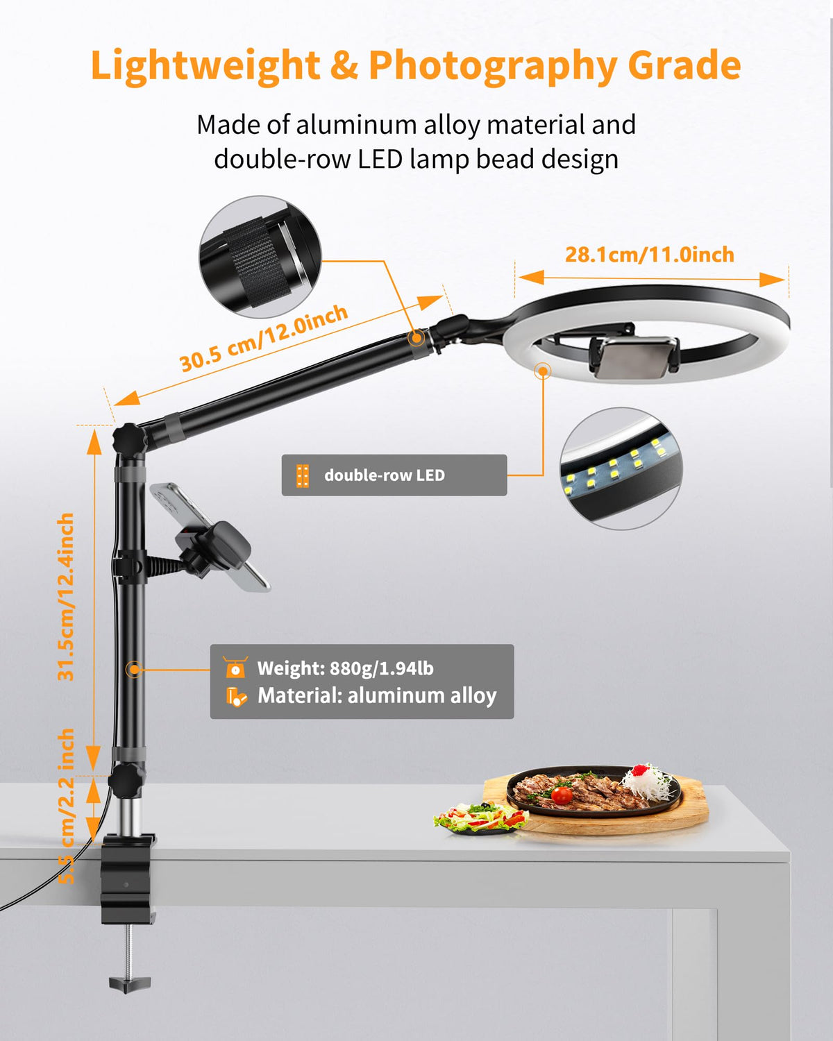 Ring Light With Stand And Phone Holder, Usb 10'' Ring Light For Desk, Overhead Camera Mount With Ringlight, Desk Lamp With Clamp