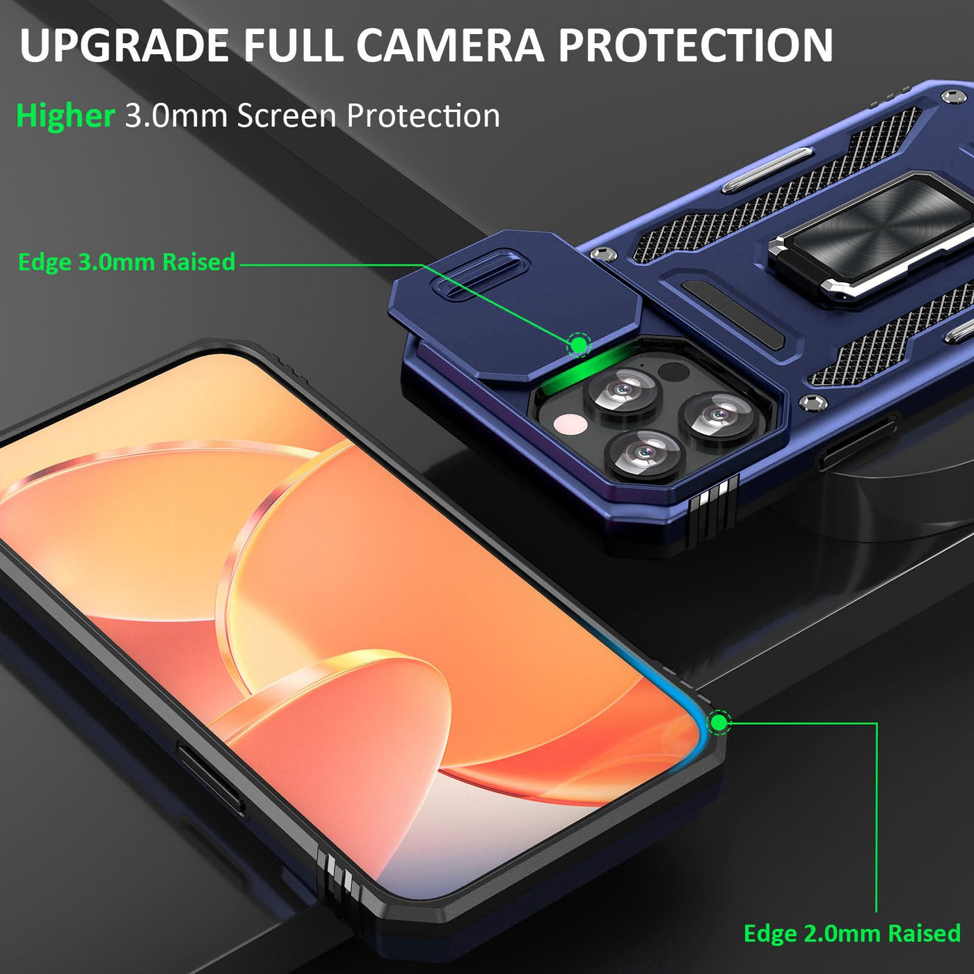 Sefing Case For Iphone 15 Pro Phone Case Iphone 15 Pro Case With Camera Lens Cover, With Ring Holder Kickstand, Fit Magnetic Car