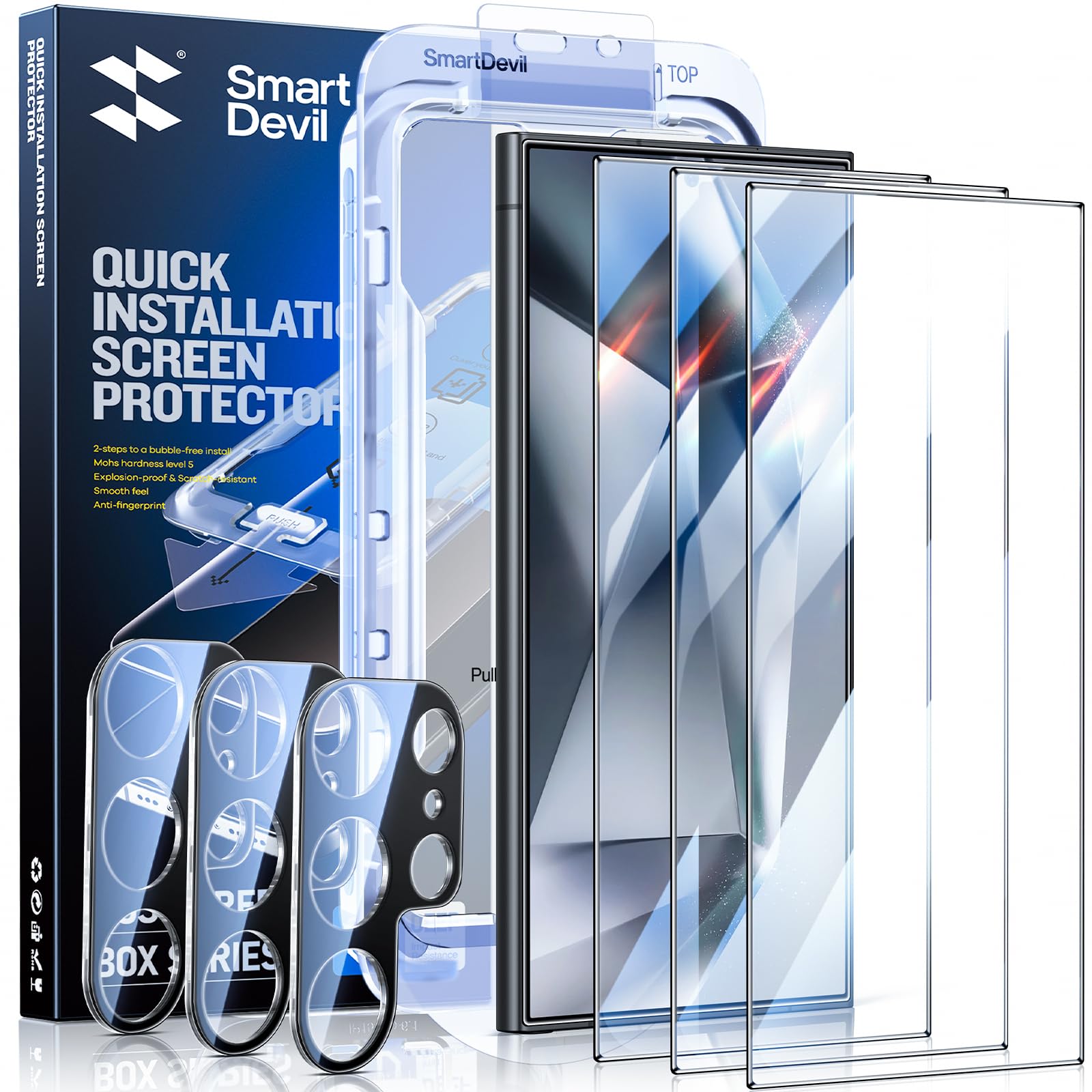 Smartdevil [3+3 Pack For Samsung Galaxy S24 Ultra Screen Protector With Camera Lens Protector,Full Coverage,Finger Print Reader
