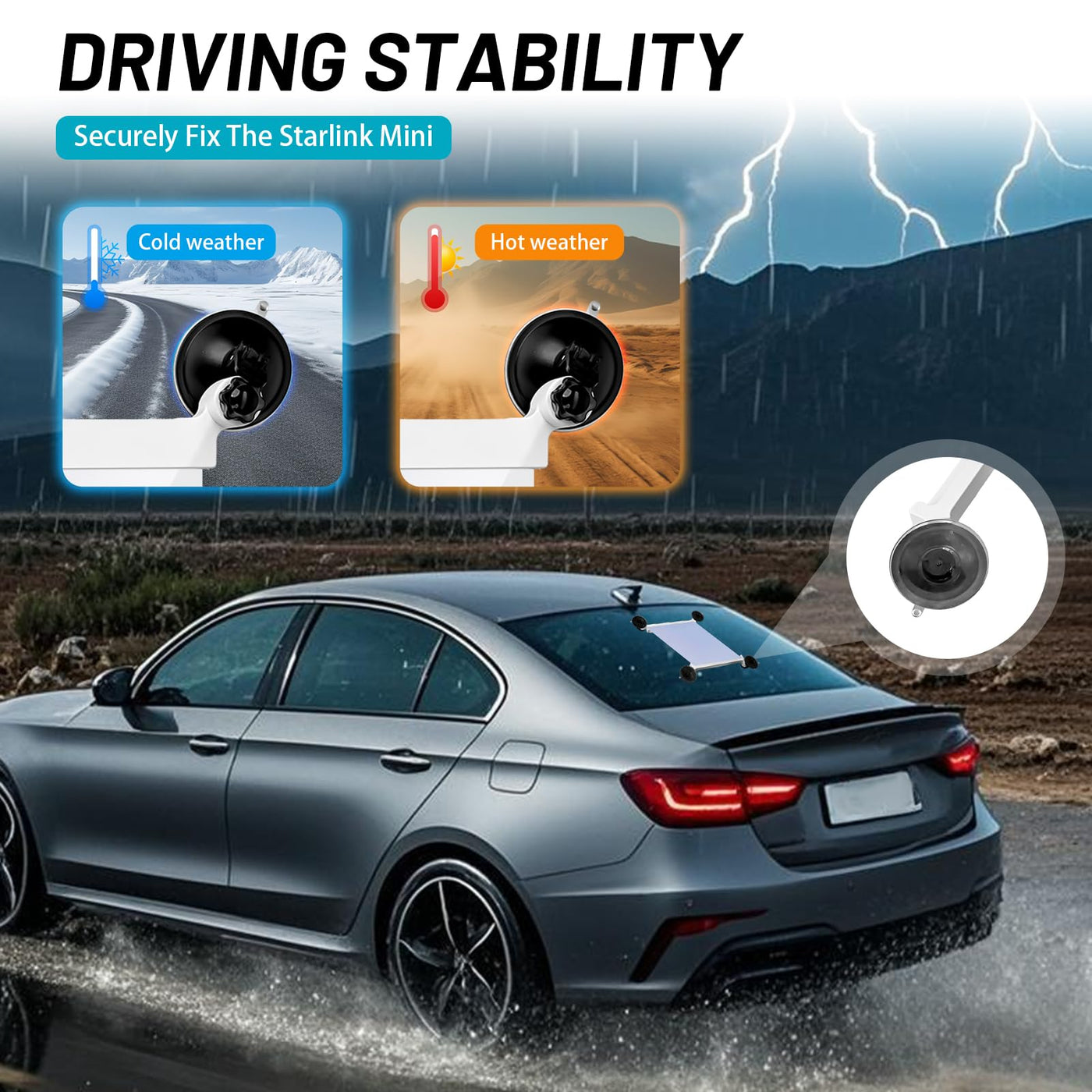 Starlink Mini Car Mounting Kit,Powerful Four Suction Cups Ensure Stable Signal Reception,Featuring A 9.84Ft Cable And Charger He
