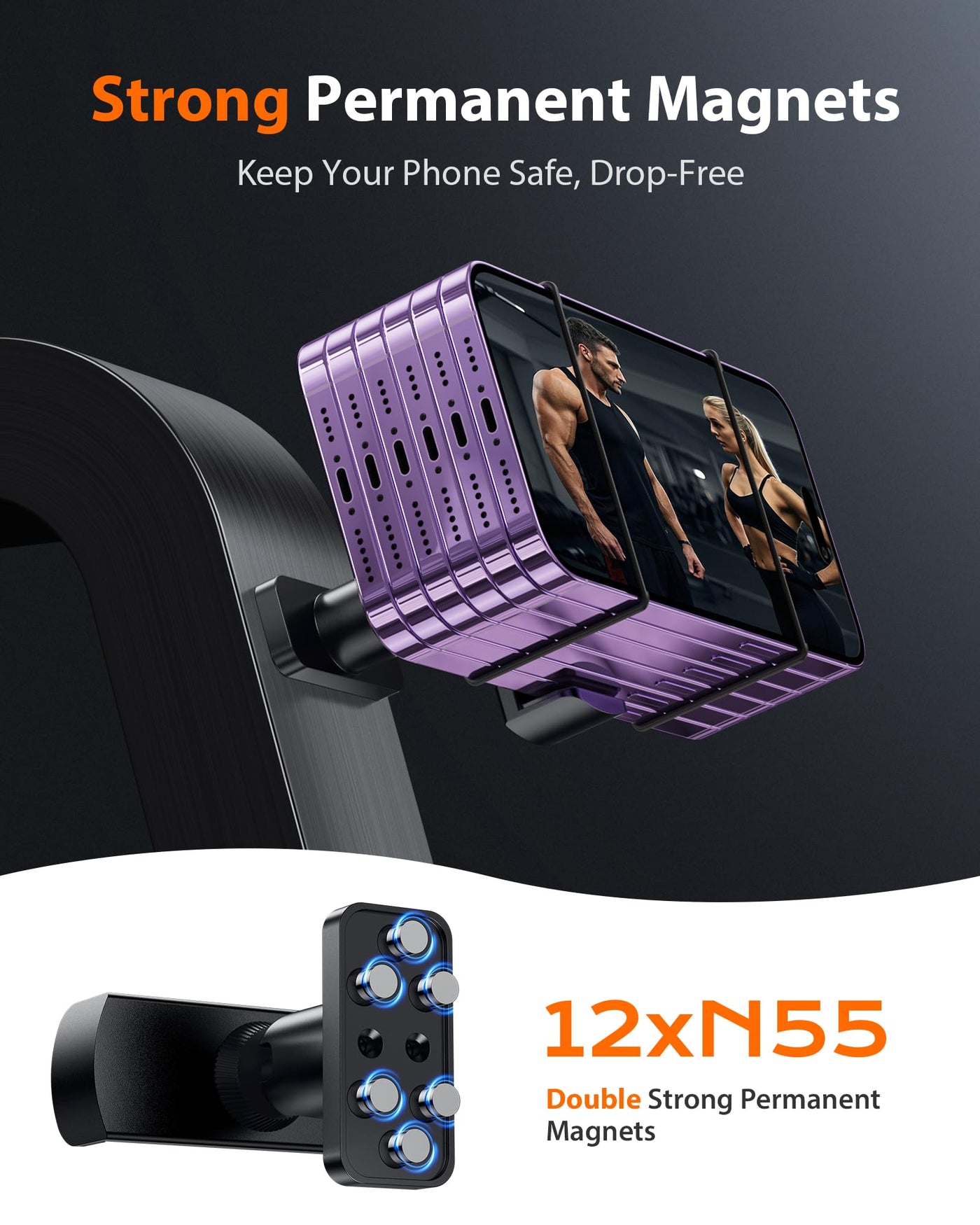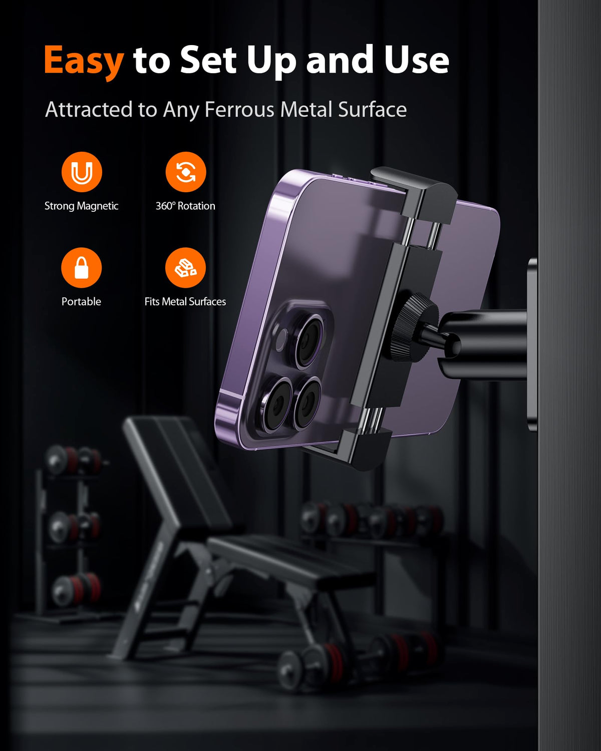 Stouchi Gym Magnetic Phone Holder, 360 Adjustable [N55 Dual Magnet] Phone Mount Gym Golf Accessories For Women/Men, All Metal Po