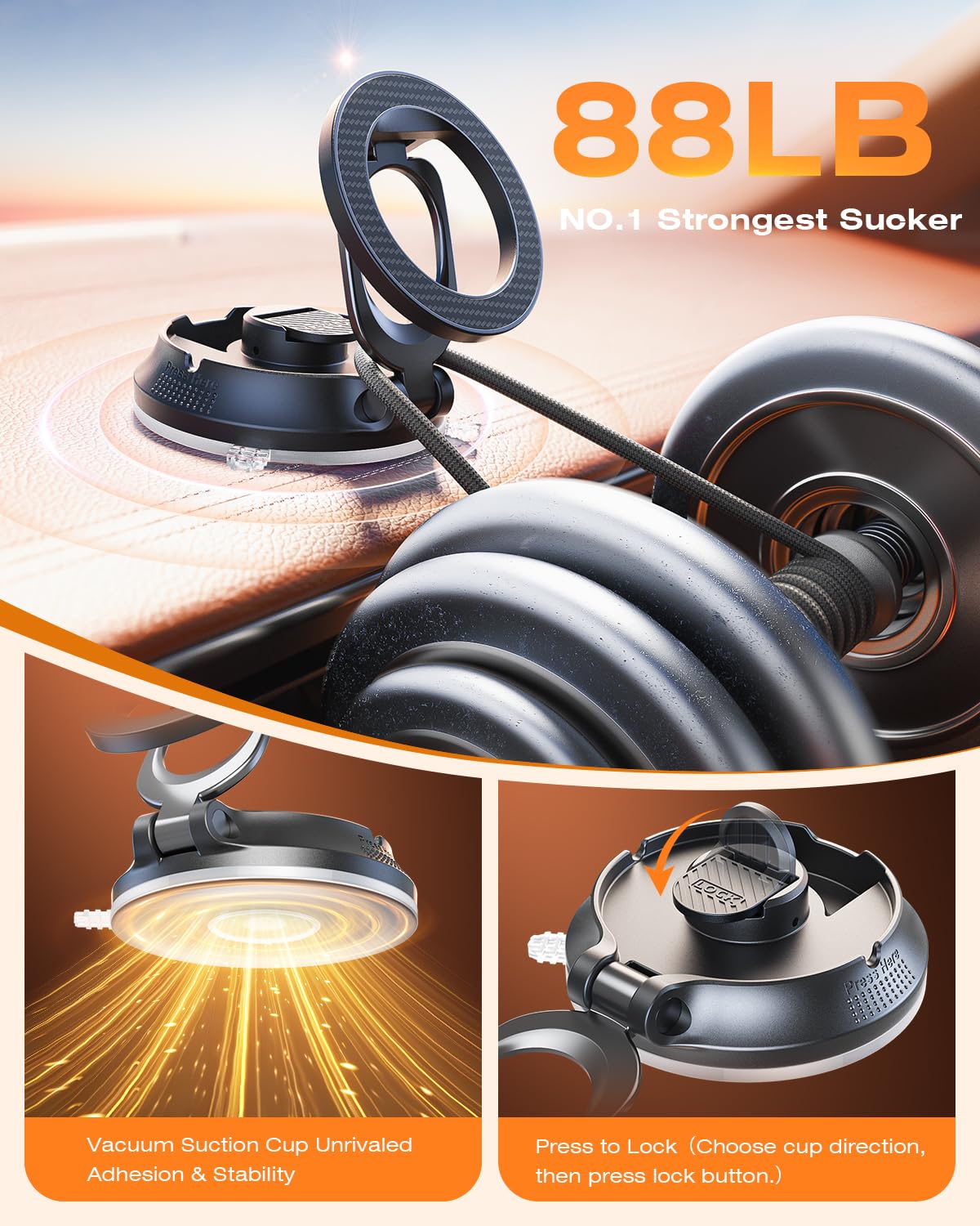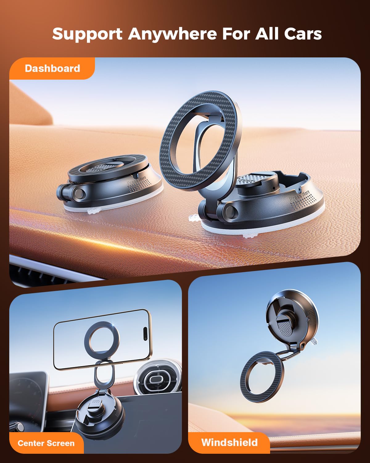 Superone For Magsafe Car Mount [88Lbs Powerful Suction] Magnetic Phone Holder For Car Dash Windshield, Suction Cup Phone Mount F