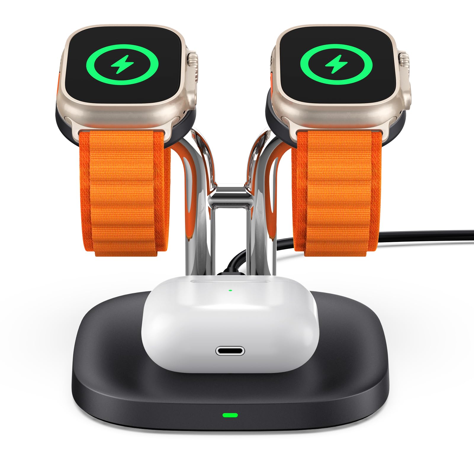 Swanscout Dual Watch Charger Stand For Apple Watch, 3 In 1 Wireless Charging Station Stand Compatible With Apple Watch Ultra 2/9
