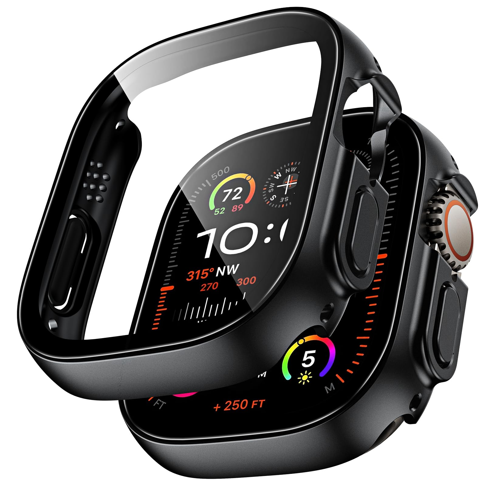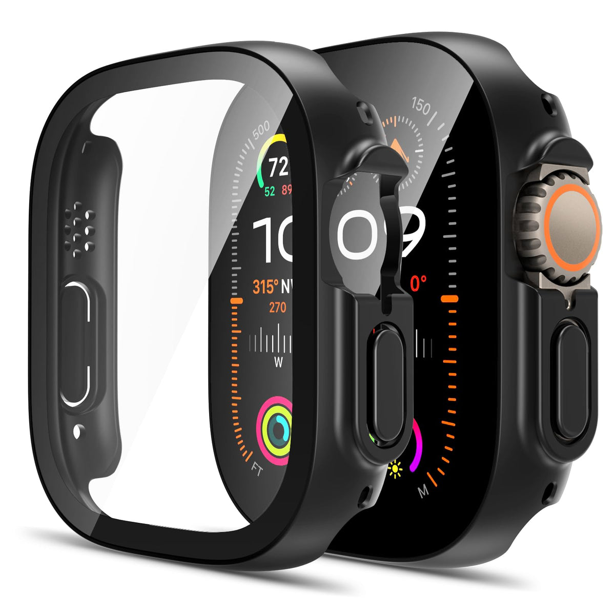 Tauri 2 Pack Hard Case Designed For Apple Watch Ultra 2 (2023) / Ultra 1 49Mm, Built-In 9H [Hd Clear] Tempered Glass Screen Protector, [Full Protection] Slim Cover For Iwatch 49Mm - Black