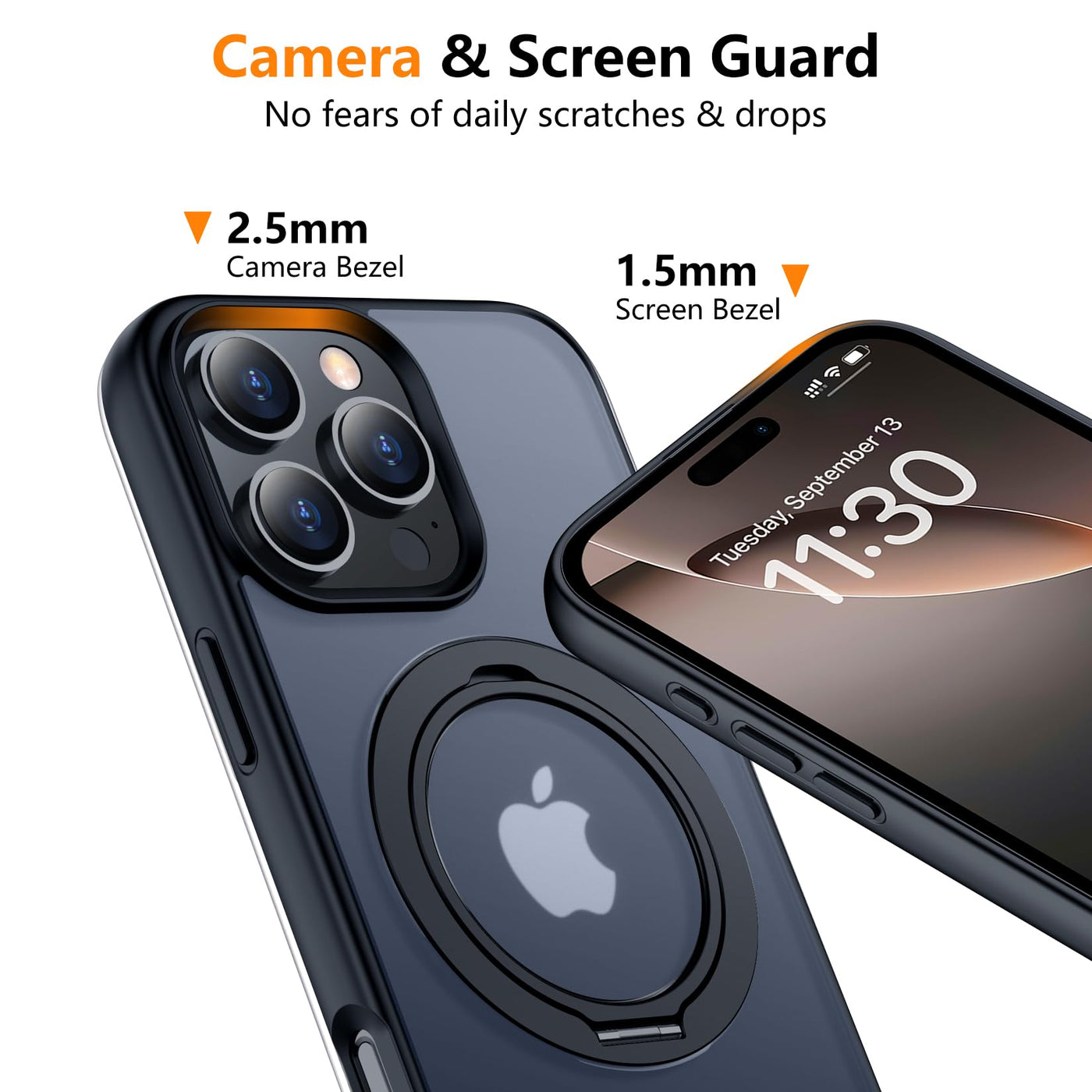 Temdan iPhone 16 Pro Max Case - Matte Black, 360° Rotatable Ring Stand, MagSafe Compatible, Military-Grade Protection, Magnetic Kickstand