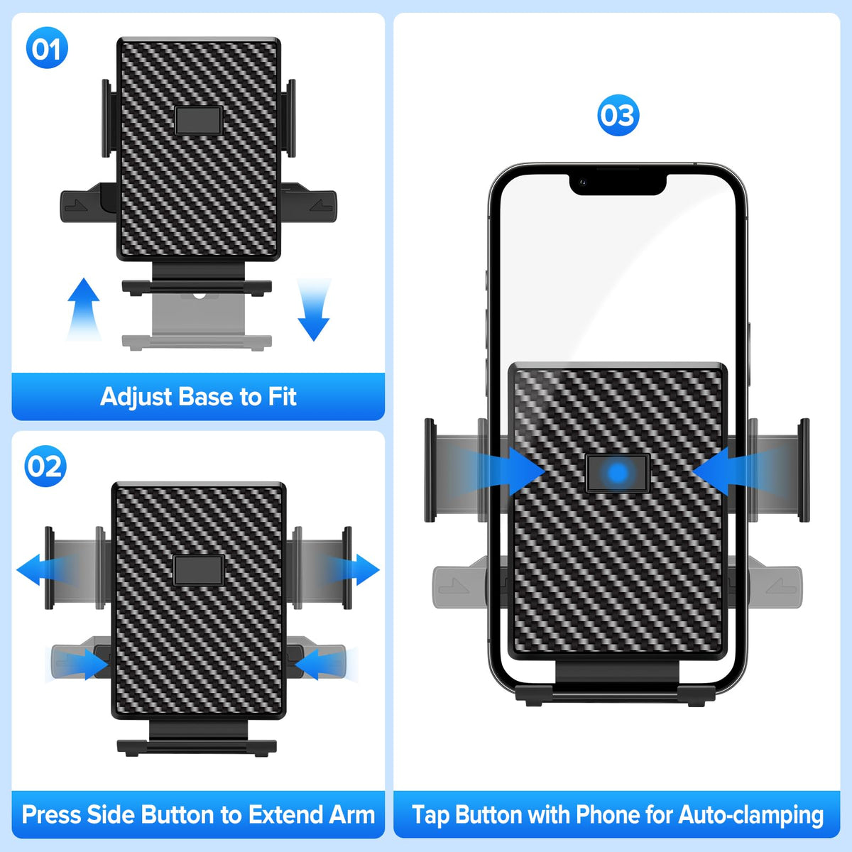 Rev Up Your Drive With Our State-Of-The-Art Phone Car Holder That Keeps Your Device Locked In Securely No Matter The Road Conditions. Enjoy Peace Of Mind With An Ultra-Secure Suction Cup Lock That Uses A Simple One-Press Mechanism To Secure Your Phone To Your Dashboard Or Windshield-No More Worrying About Slips Or Falls On Bumpy Highways. Adjust Your View Effortlessly With A Full 360 Ball-Joint Swivel And Dual-Joint Arm, Ideal For Setting Your Phone In Either Vertical Or Horizontal Mode So You Can Easily Navigate With Gps Or Take Hands-Free Calls Without Blocking Your Line Of Sight. The Adjustable Base Offers Maximum Stability With An Extendable Support That Holds Devices Of Any Size Steady, Whether You'Re Cruising In A Compact Car Or Hauling In A Pickup Truck. With Intuitive One-Handed Operation, Locking And Releasing Your Phone Is As Easy As A Gentle Press On The Center Button Followed By A Quick Side Press. Designed To Fit A Wide Range Of Iphone And Android Devices From 4 To 7 Inches-Including Those With Thicker Cases-This Dashboard Phone Holder Is Built For Everyday Convenience And Safety. Upgrade Your Ride Today And Enjoy A Smarter, More Secure Driving Experience.