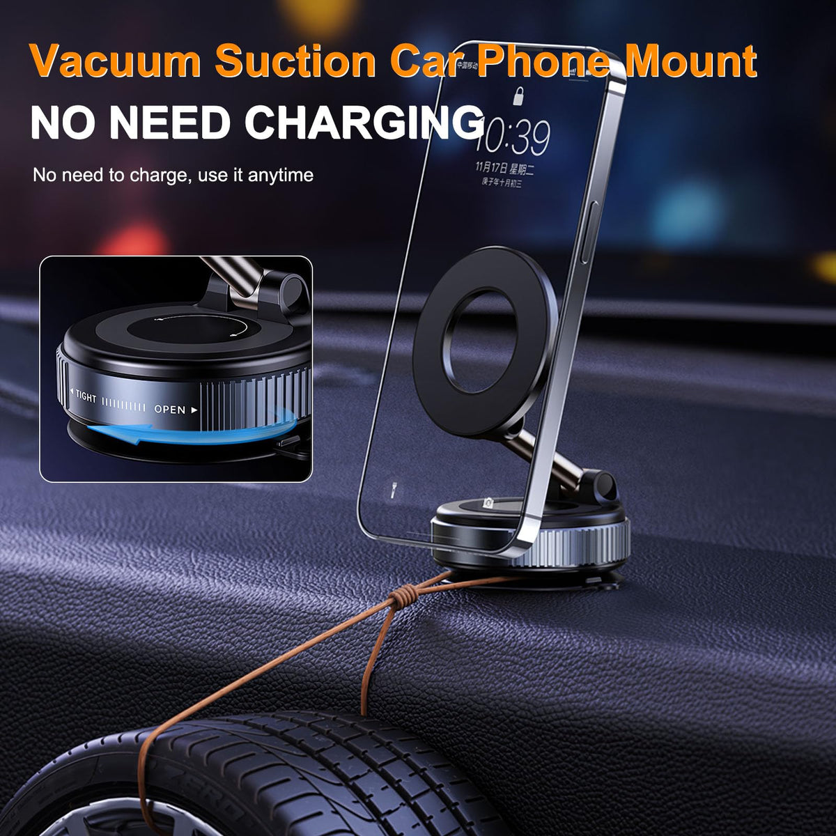 ?Magnetic Vacuum Suction Phone Mount?Featuring Innovative Vacuum Suction Technology, This Vacuum Suction Cup Phone Holder For Car Securely Attaches With A Simple Press-No Tools Required! It Works On Glass, Dashboards Or Any Smooth Surface, Giving You The Flexibility To Mount Your Phone Wherever You Need It. | ?Powerful Suction Magnetic Phone Car Mount?Equipped With 16 Powerful N52 Magnets, This Suction Magnetic Phone Car Mount Provides Double The Magnetic Strength. Whether You