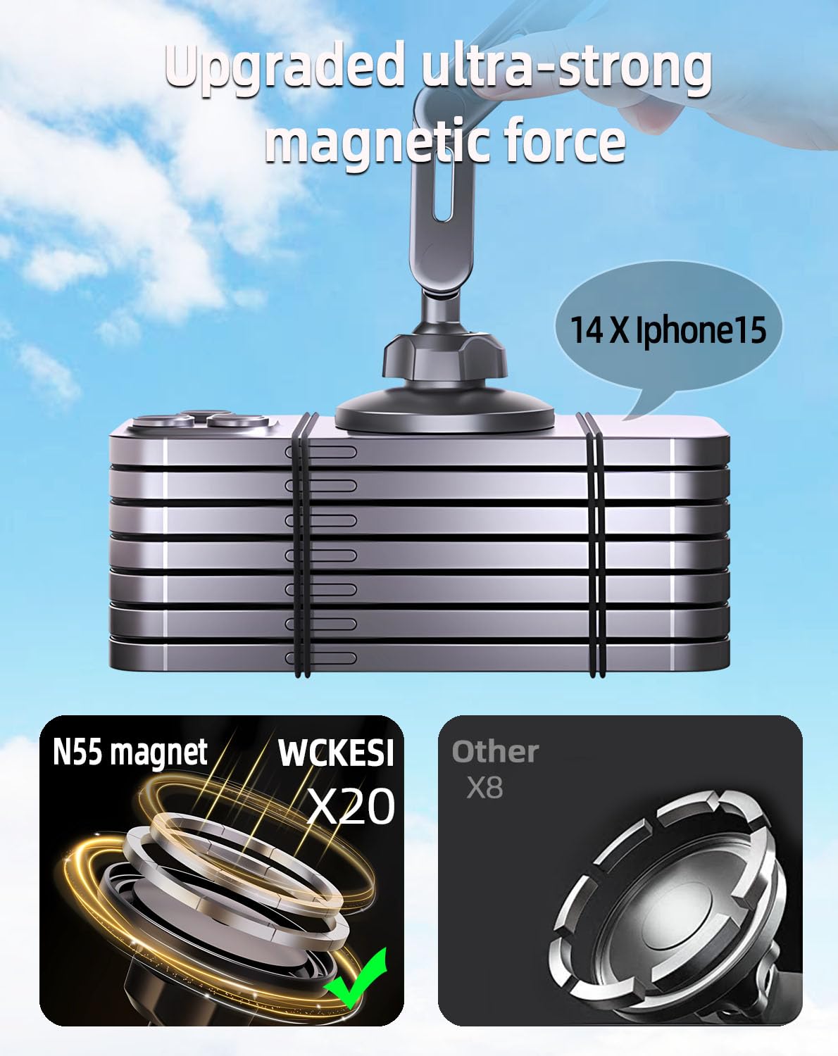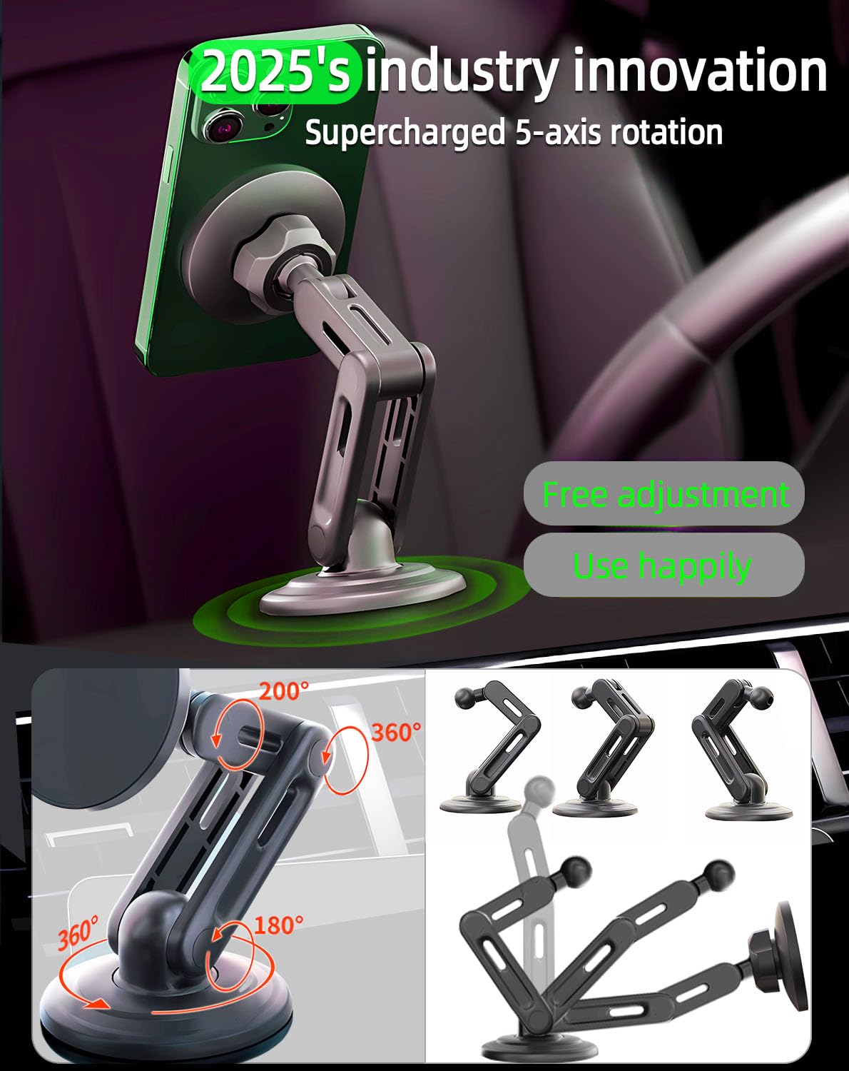 The Design Features A Base That Can Rotate 360, And It Includes 5 Adjustable Joints, Allowing For Flexible Adjustments To Create Various Angles. You Can Use The Wckesi Magsafe Car Mount In Different Settings Such As The Car Dashboard, Windshield, Tesla Screen, And On Your Desk. Additionally, The Foldable Design Lets You Hide The Car Phone Mount, Creating A Cleaner And More Organized Environment.