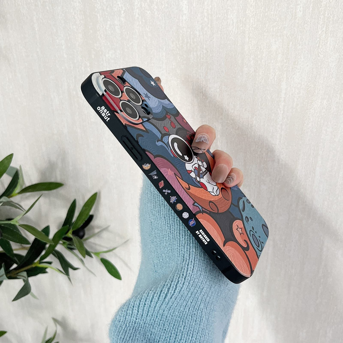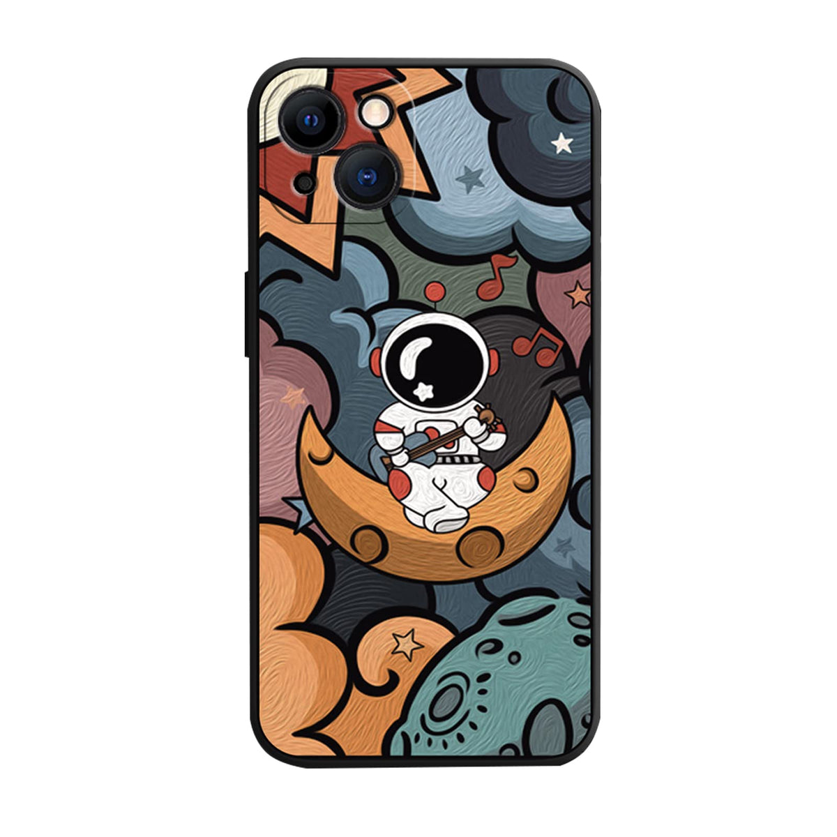 Yonds Queen Compatible With Iphone 12 Cute Case, Cool Cartoon Astronaut Moon Space Painting Design Stylish Soft Tpu Bumper Shock