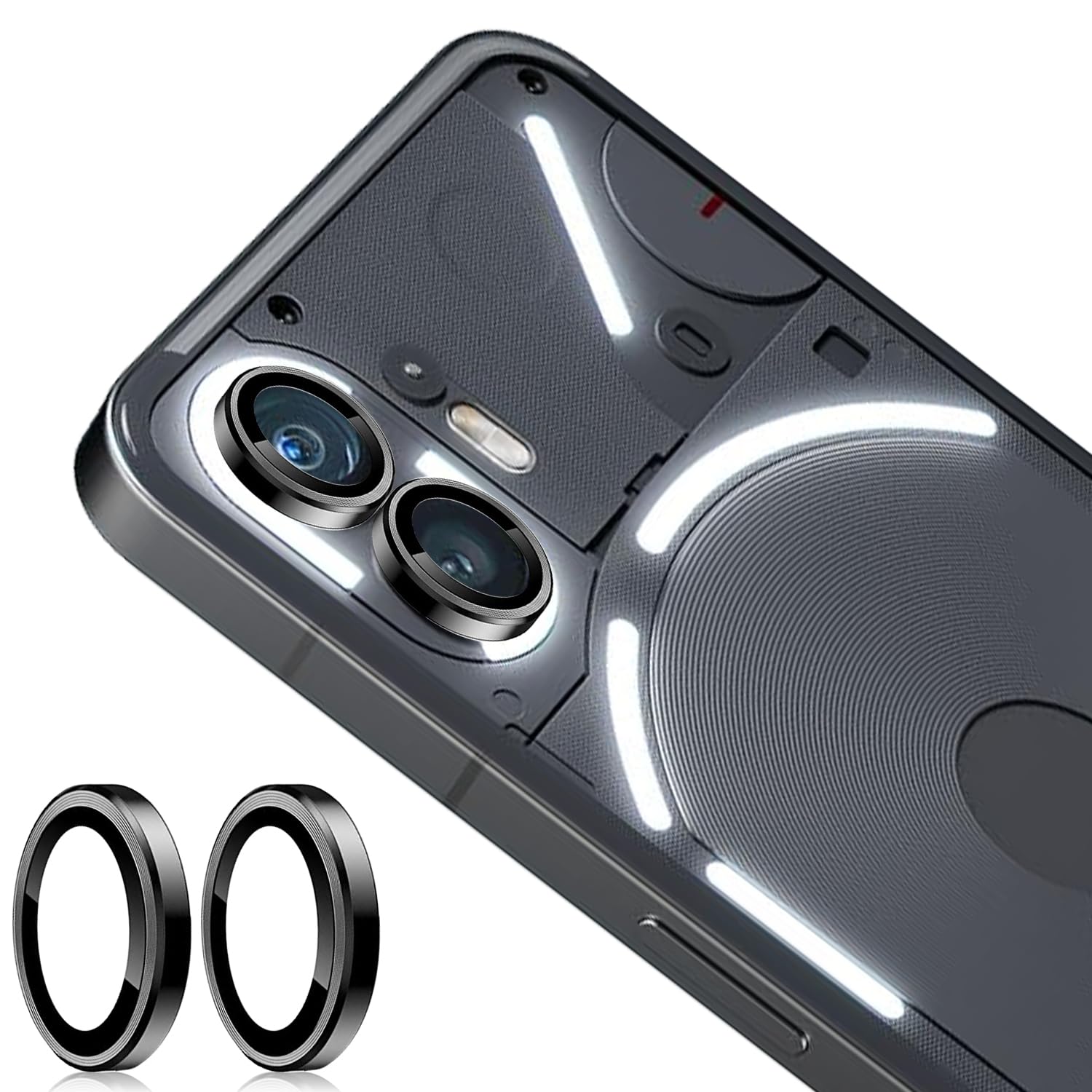 Zeking (2 Set For Nothing Phone (2) Camera Lens Protector, Scratch Resistant Hd Clarity Ultra Thin 9H Tempered Glass With Aluminum Edging, Individual Metal Lens Cover (Black)