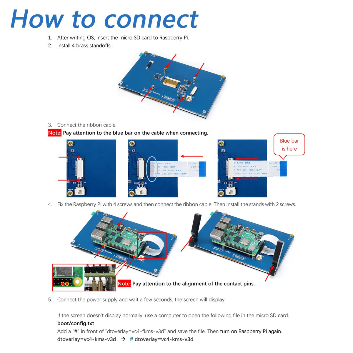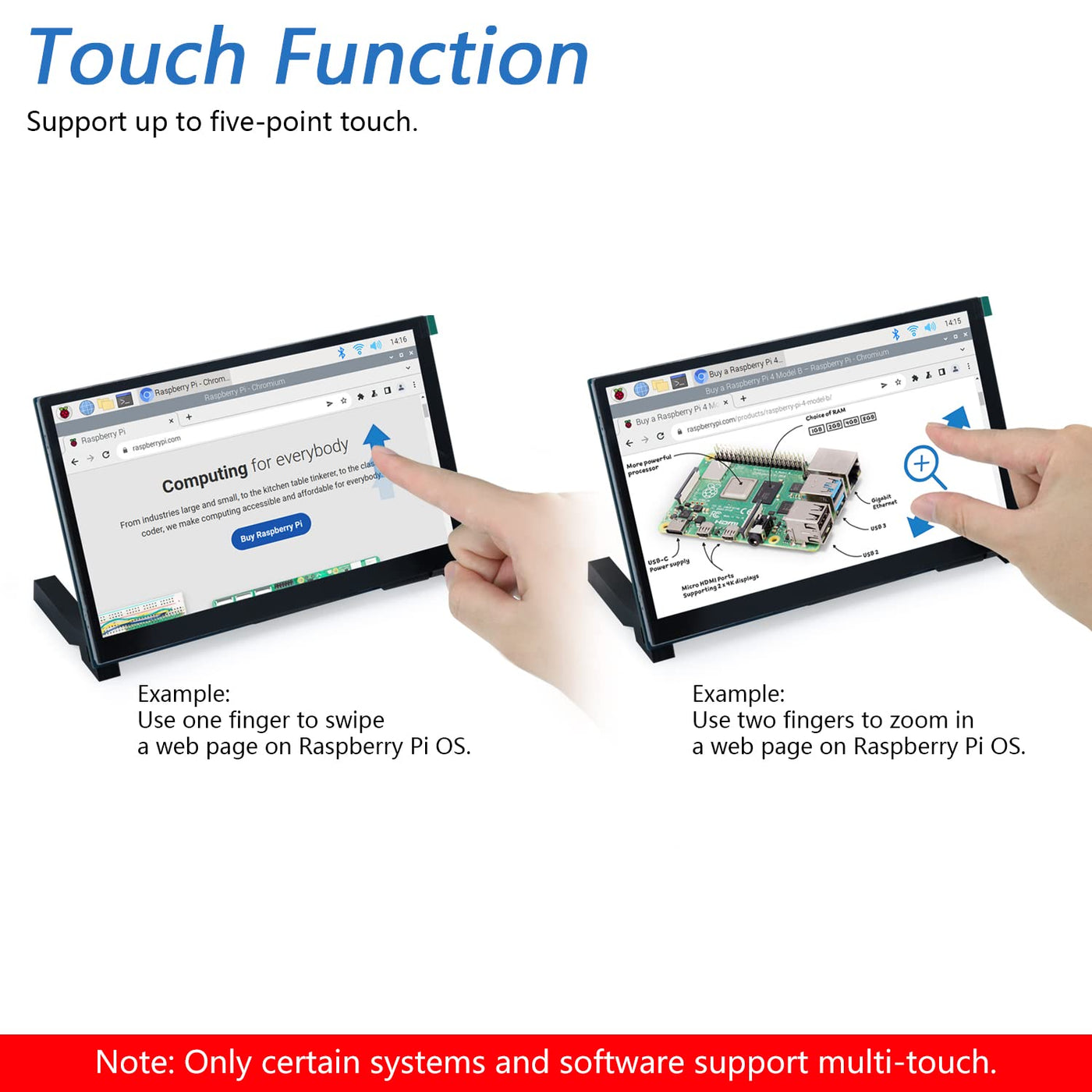Important Notes: This Kit Does Not Include Raspberry Pi And Its Accessories. This Display Has No Hdmi Port And Is Only Compatible With Certain Models Of Raspberry Pi. Overview: This Is A 7 Inch Ips Monitor With 5-Point Touch Capacitive Screen For Raspberry Pi. Only Need The Connection To The Display Port (Marked Cam/Disp On Raspberry Pi 5, Display On 4 And Previous). We Provide Free Technical Support To Help You With Any Questions And Problems. Compatible Models: * Raspberry Pi 5 / 4B / 3B+ / 3B / 3A+ / 2B / 1B+ / 1A+ (Note: No Hdmi, Not Compatible With Any Other Device.) Tutorial: Comes With Tutorial To Show How To Use. (Downloadable And Paper Tutorial.) The Download Link Can Be Found On The Product Box. Screen Parameters: Size: 7 Inch Resolution: 800 X 480 Pixel Refresh Rate: 60 Hz Screen Type: Ips Wide Viewing Angle Touch Type: 5-Point Touch Capacitive Interface: Mipi Dsi Package Includes: 1 X Touchscreen Monitor 1 X Ribbon Cable (5Cm) 1 X Ribbon Cable (10Cm) 1 X Ribbon Cable (20Cm) 1 X Ribbon Cable (16Cm) For 5 1 X Cross Screwdriver 4 X M2.5*4+4 Standoff 4 X M2.5*4 Screw 2 X M2.5*12 Screw 2 X Monitor Stand