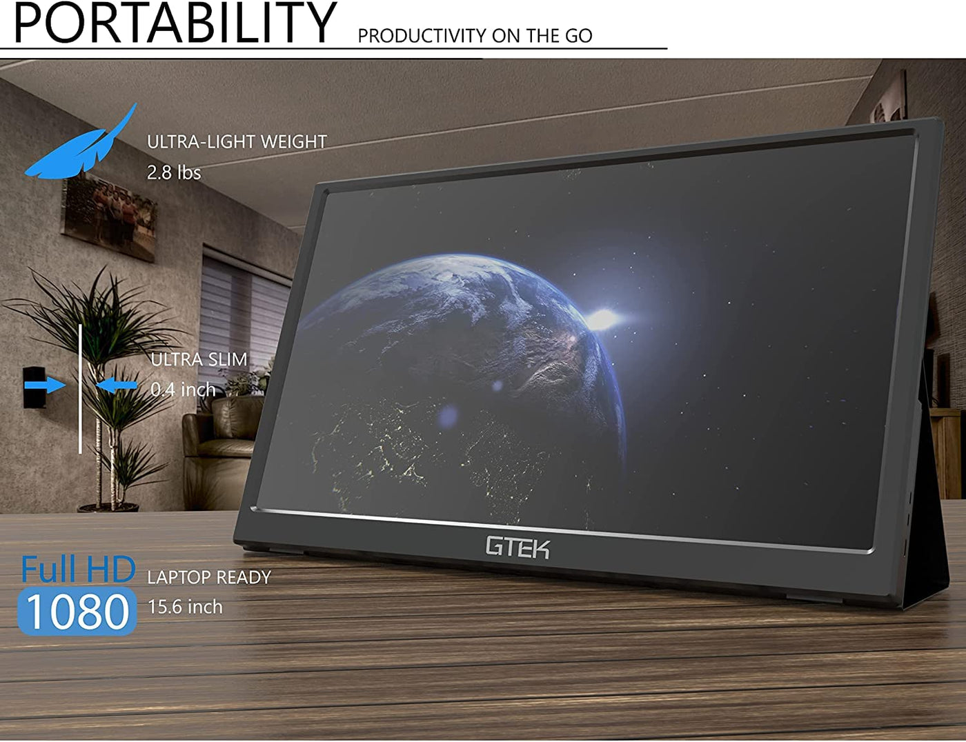 Gtek Portable Monitor Was Made With Portability In Mind; To Extend The Productive Workplace On-The-Go. We Created Our Portable Monitor For The Laptop, Gaming Consoles And Mobile Phones; See It As A Secondary Screen For Your Portable Display Needs. A Single Usb C Cable Is All You Need For Our 15.8 Inch Travel Monitor, Larger Than A 15.6 Inch, As We Made It Simple And Convenient To Extend Your Display, Perfect For Mobile Entertainment And More! Weighing Slightly Under 2Lbs, Our Travel Display Is Made Perfect For Mobile Presentations.