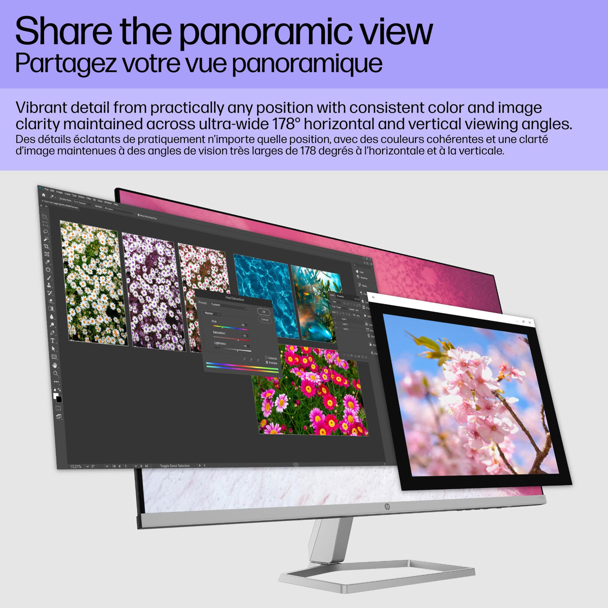 FHD (1920 x 1080) 3000:1 7ms GtG (with overdrive)See all Specs Lose yourself in the picture-perfect immersion of this massive canvas, designed to redefine comfort, wellness, and sustainability[1]. Play, work, or simply stare into the new definition of high definition.The New Definition of High DefinitionThis FHD display feels as good as it looks, packing 99% sRGB color gamut for color accuracy and Freesync to keep your eyes up to speed with your imagination[2].Looks Good, Feels Good, Does GoodIncrease viewing comfort with Eyesafe technology that doesn't sacrifice color quality. Monitor designed with sustainability in mind with 85% recycled materials and packaged in recycled materials[1]. Doing good never looked so good.Streamlined & SeamlessStreamline your setup with its slim profile, innovative cable containment, and seamless design for side-by-side screens. Display type VA Display features On-screen controls; AMD FreeSync�; Low blue light mode; Anti-glare Onscreen controls Brightness; Exit; Information; Management; Power control; Input control; Menu control; Image; Color Native resolution FHD (1920 x 1080)[1] Resolutions supported 640 x 480; 720 x 400; 800 x 600; 1024 x 768; 1280 x 720; 1280 x 800; 1280 x 1024; 1440 x 900; 1600 x 900; 1680 x 1050; 1920 x 1080 Contrast ratio 3000:1 Brightness 300 nits Pixel pitch 0.364 mm Signal input connectors 1 VGA; 2 HDMI 1.4 (with HDCP support) Webcam No integrated camera VESA Mounting Not VESA mount compatible Power supply 100 - 240 VAC 50/60 Hz Dimensions (W X D X H) 27.96 x 1.58 x 16.32 inWithout stand. Weight 11.24 lb What's in the box Monitor; HDMI cable; Documentation; AC power cord