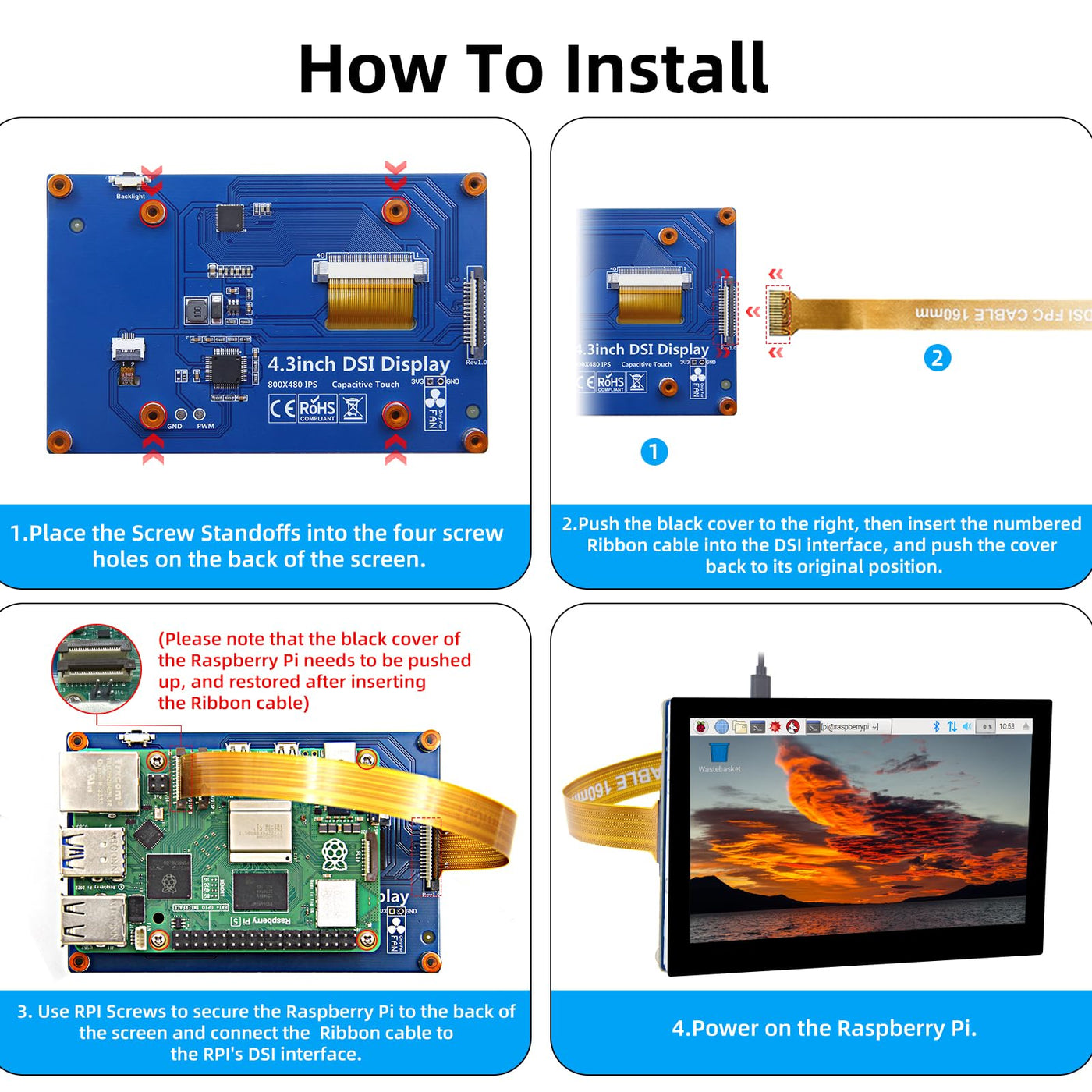Ipistbit 4.3 Inch Raspberry Pi Screen, 800X480 Pixel Capacitive Touchscreen, Mipi Dsi Lcd Display For Raspberry Pi, Driver Free