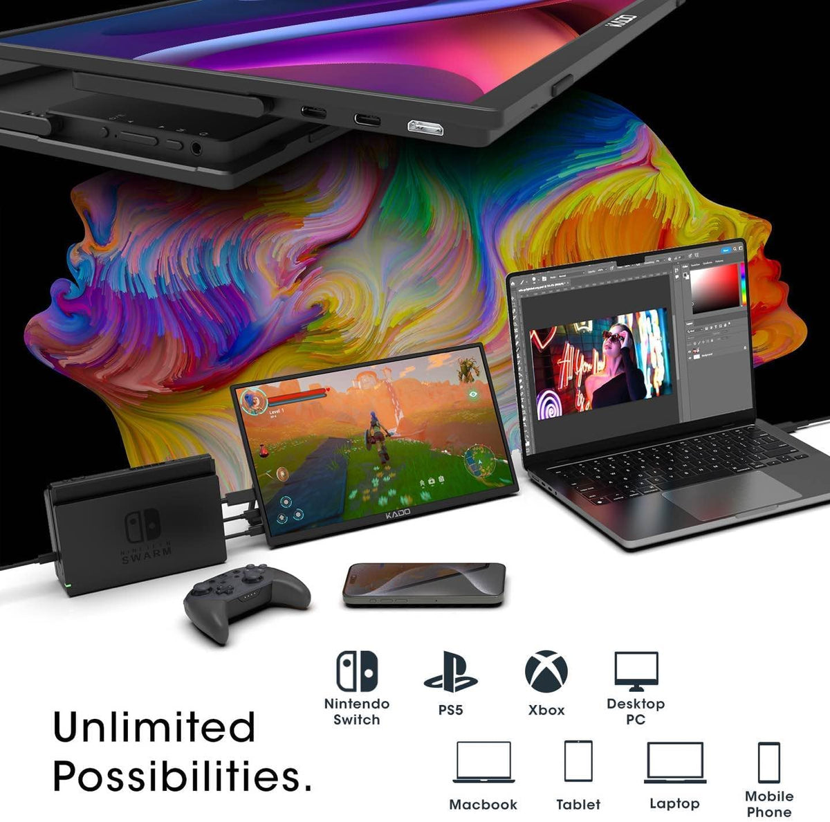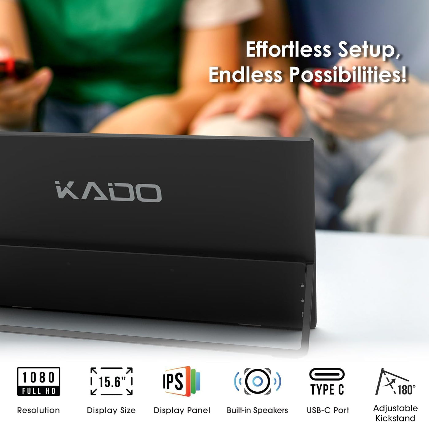 Kado 15.6'' Fhd 1080P Ultra-Slim Laptop Monitor 1920X1080, Ips Second Display 180 Kickstand Protective Case Sleeve, Screen Exten