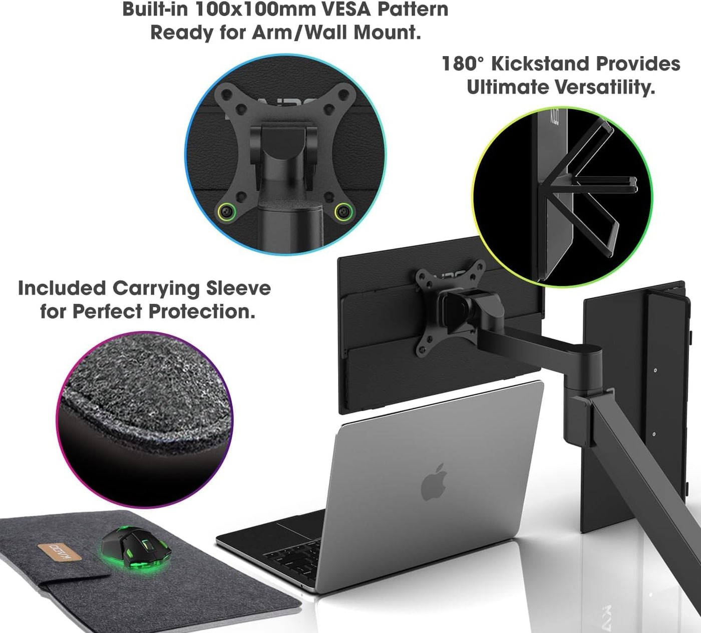 Kado By Sceptre 15.6'' Fhd 1080P Ultra-Slim Laptop Monitor 1920X1080, Ips Second Display 180 Kickstand Protective Case Sleeve, Screen Extender For Pc, Mac, Phone, Xbox, Ps5, Usb-C & Hdmi Connectivity