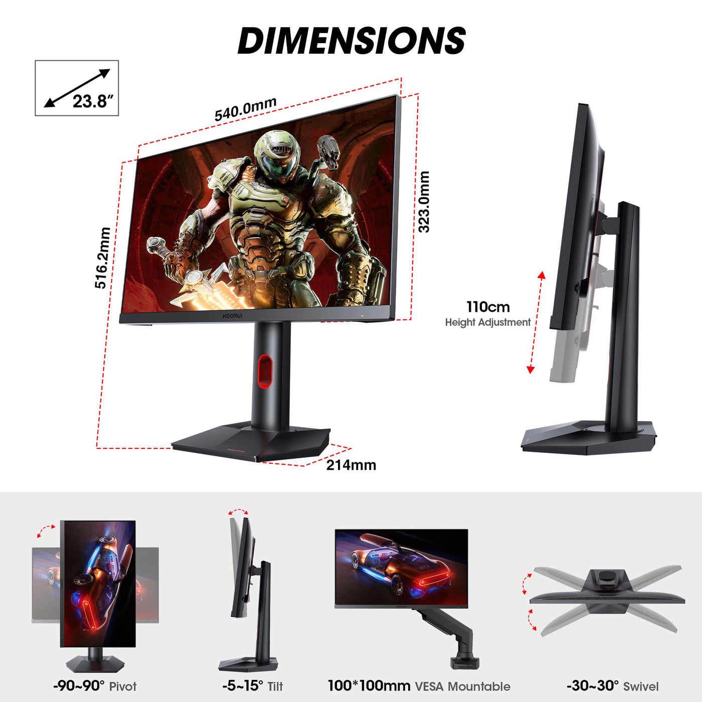 Koorui 24'' Qhd Gaming Monitor 165Hz, 1Ms, Fast Ips, 2K Display, 100% Srgb, Adaptive Sync, Height/Tilt/Pivot Adjustment, Hdmi, D