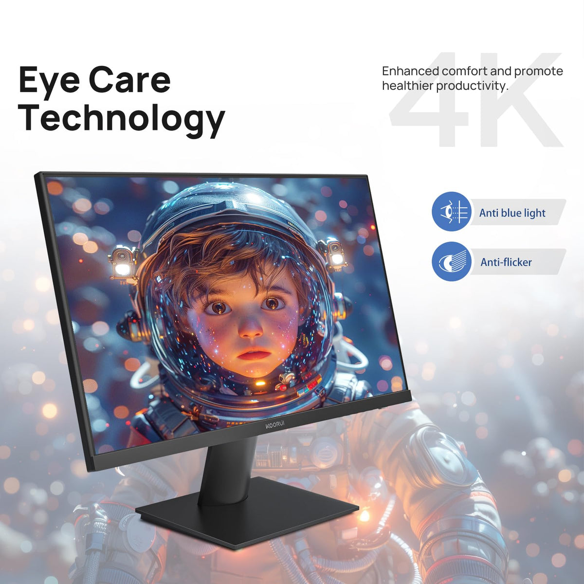 Koorui 27 Inch 4K Uhd(3840 * 2160) Monitor Ips Ultra-Thin Computer Monitor With 95% Dci-P3, Freesync & G-Sync, Displayport&Hdmi,