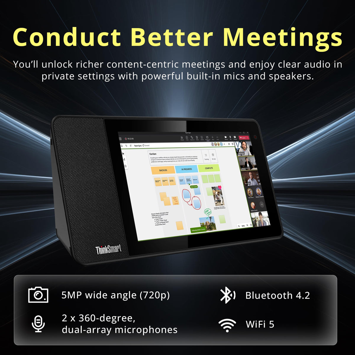Designed To Sit On Your Desk At Home, At The Office, In A Huddle Room, Or In A Hotel Room, The Stylish Lenovo Thinksmart View Is A Personal Video-Conferencing Device Dedicated To Conducting Productive Distance Meetings And Business Collaboration Using Microsoft Teams. It Operates As A Wireless Standalone Unit, Quickly Connecting To Your Home/Office Network Via Wi-Fi-Without The Need For A Computer.