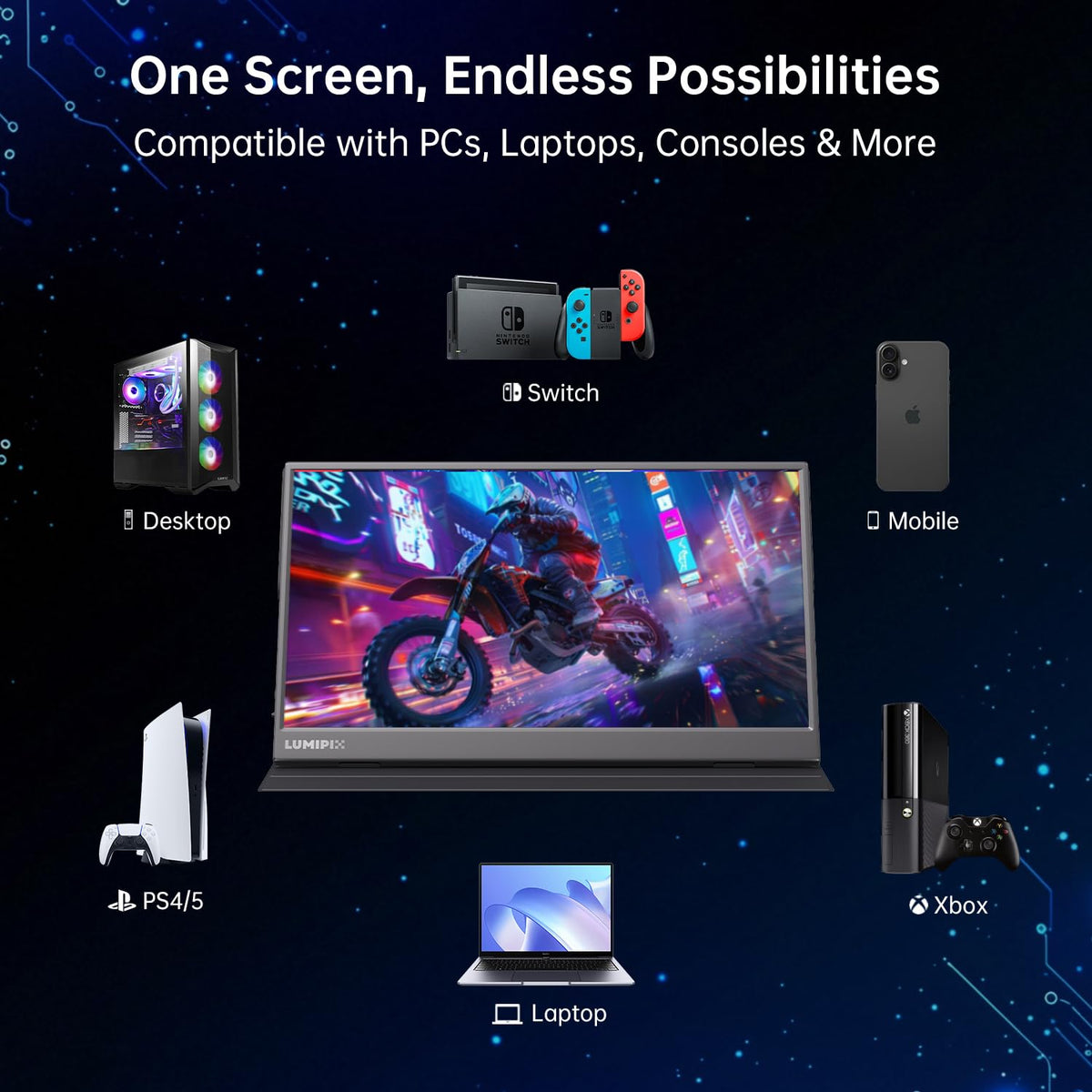 Lumipix Portable Monitor 15.6 Inch 1080P Fhd Ips Gaming Display Monitor With Usb-C & Hdmi, Ultra-Slim External Second Screen Wit