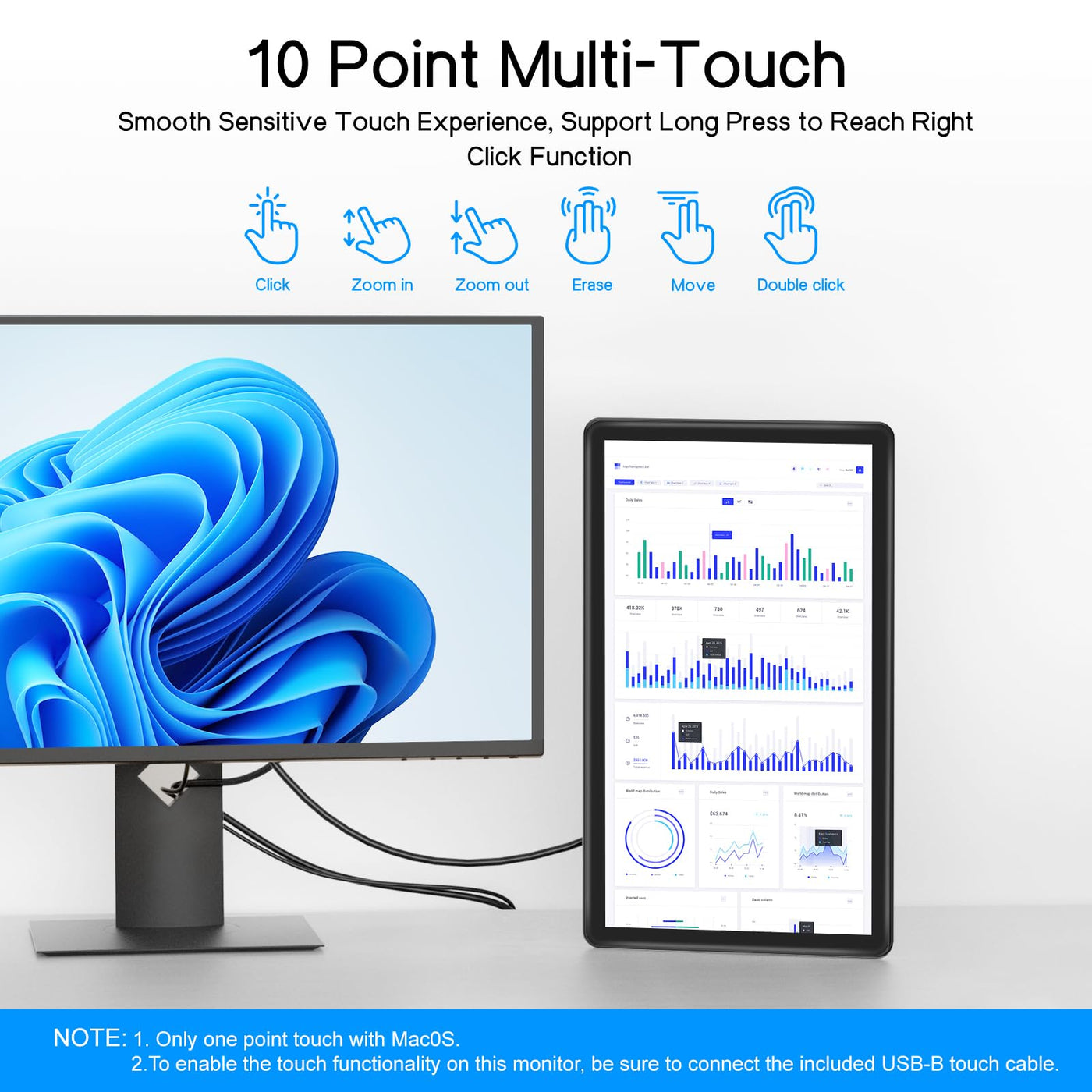 ?Wide Compatibility?Equipped With Hdmi,Vga And Dvi Ports,Usb B Port(Touch Functionality), Magex 15.6 Touchscreen Monitor Offers Versatile Compatibility With Pc, Mini Pc, Laptops, Rasp Pi, Cctv, Security, Kiosk, Pos, Industrial Medical Devices And Other Devices. Note: Some Devices Cannot Support Touch Due To System Protection. For Example, Ps3/4/5, Switch, X-Box, Steam-Deck, Fire Tv Stick/Cube And Iphone, Ipad(Its Not The Monitors Problem) | ?Sensitive 10-Point Touch Screen?Regardless Of Switching, Swiping, Zooming In And Out, All Provide Accurate, Seamless Control, Enhance Your Work Efficiency Through Intuitive Touch. Elevate Your Interaction With The 15.6 Touch Screen Monitor To A New Level With Its Precise Ten-Point Touch Functionality. Note: Please Connect The Type-B Port Via A Type-A To Type-B Cable For Touch Function. | ?15.6 Hdr 1080P Monitor?15.6 Inch Touchscreen Monitor With A True Ips Panel And A 178