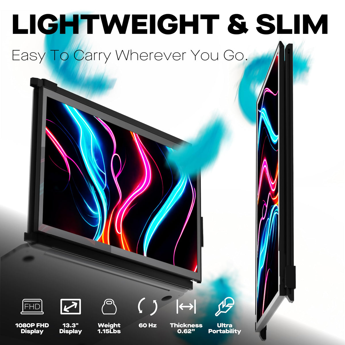 Mobile Pixels Inc. Was Founded In 2018. Founder, Jack, Was Constantly Frustrated By The Lack Of A Secondary Monitor That Could Help Him Work More Efficiently. Feeling Strangely Nostalgic About The Work Monitor He Used At His Previous Job, He Decided To Build A Laptop Monitor From A Broken Laptop. That Is How Our First Product Mobile Pixels Duex Was Born. We Combined The Best Technology In The Market To Create A Lightweight Portable Monitor That Increases Your Productivity And Makes Working Efficient.? Color: Black? Size: 13.3 Inches? Body Weight: 1.3Lbs? Body Thickness: 0.25'' ? Body Thinnest:0.58''? Product Dimension: 12.25 X 8.46 X 0.5 Inches? Panel Type: Ips Lcd Screen? Resolution: 1920*1080? Aspect Ratio: 16:9? Color Gamut: 72% Nesc? Frequency: 60 Hz? Brightness (Standard Value): 250 Cd/M2? Response Time: 2Ms ? Signal: Usb Type-C, Type-A, Hdmi? Energy Consumption: 4.5Wpackage Includes: Duex Plus Ds Laptop Monitor Extender* 1 Usb-C Cable With Usb- A Adapter * 1 Mini Hdmi To Hdmi Cable * 1Metal Adhesive Plate * 4 (For Laptops)Instruction Manual*1?Warranty: One Year Warranty.