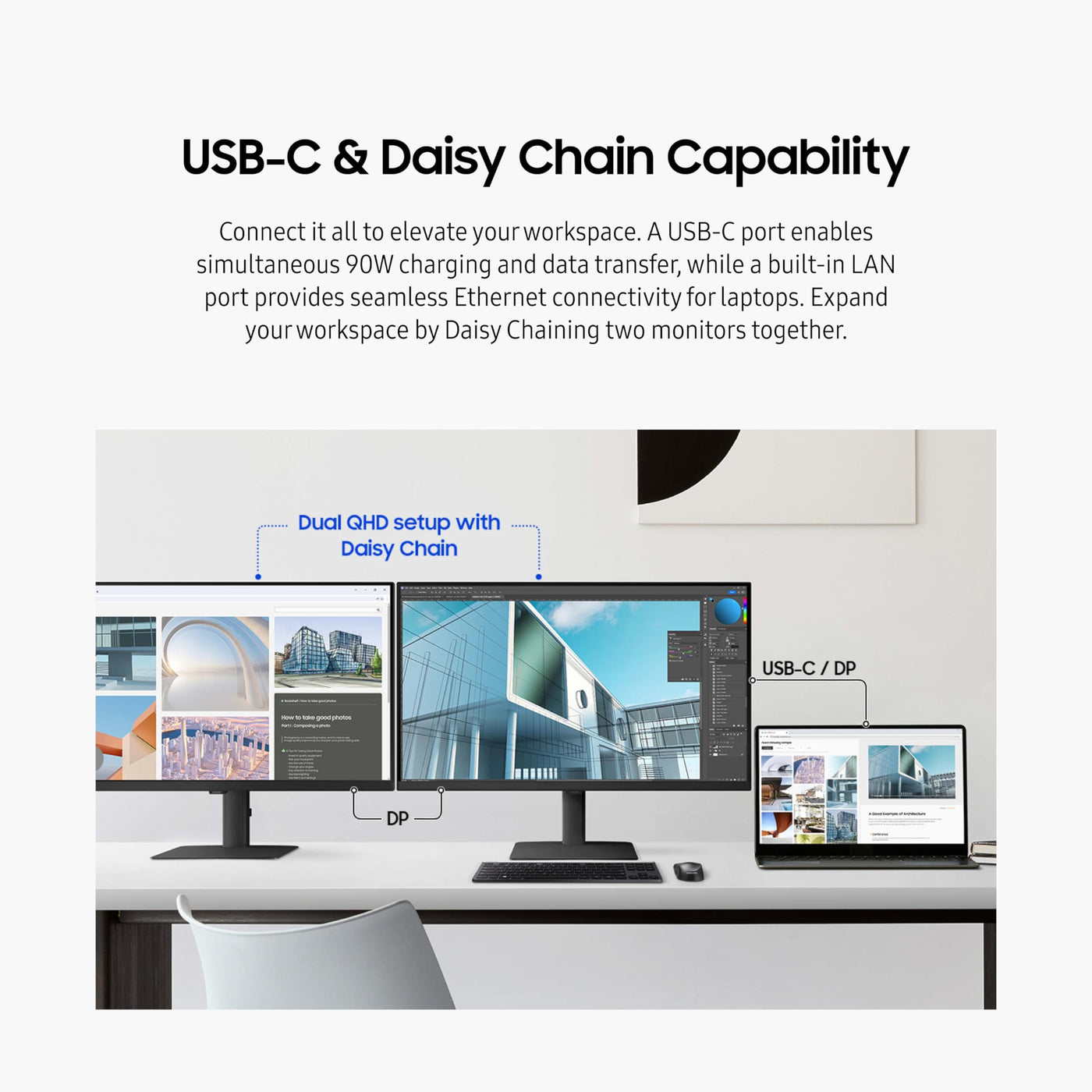 Samsung 24 Viewfinity S6 (S60Ud) Series Qhd High Resolution Computer Monitor, 100Hz, Hdr10, Usb-C, Built-In Lan Port, Daisy Chai