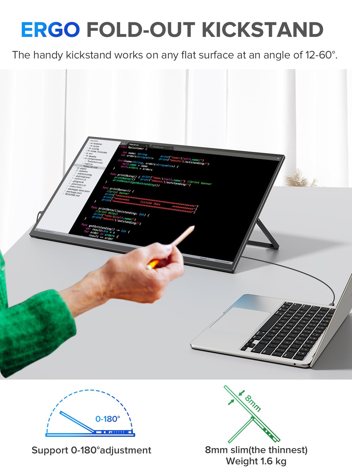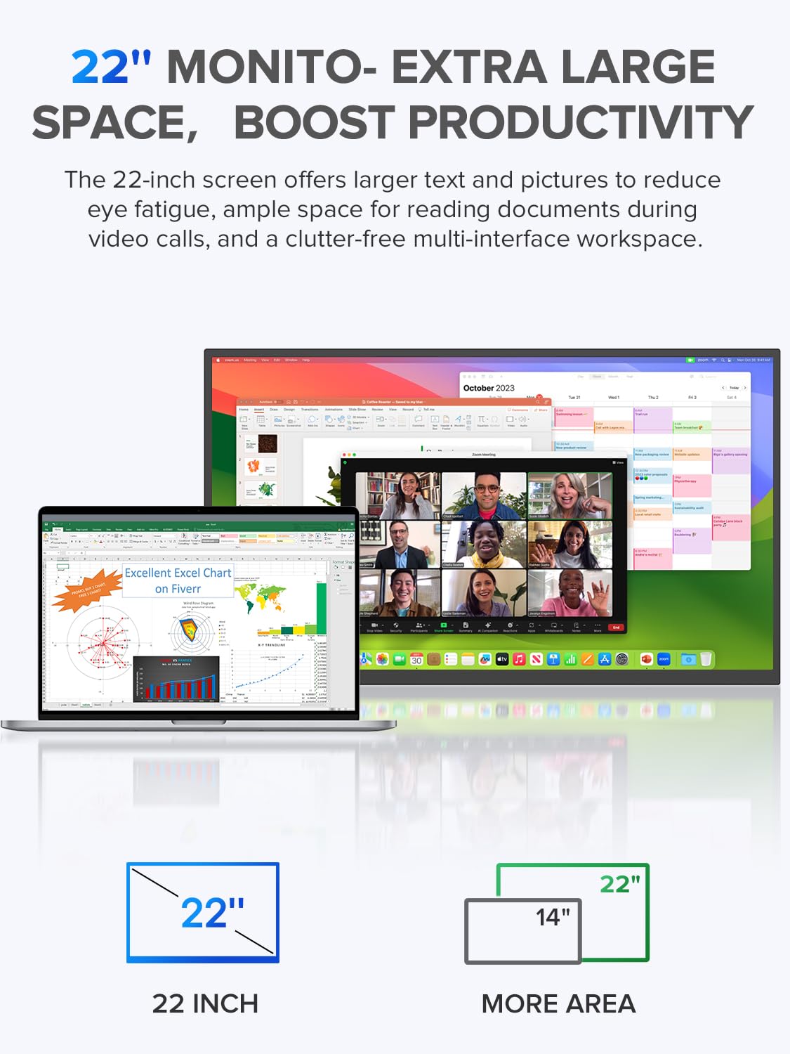 22'' Big Screen: The 22'' Portable Monitor Offers Expansive Viewing, 2K Crystal-Clear Resolution, Versatile Connectivity, And Enhanced Multitasking In A Sleek, Portable Design Perfect For Productivity And Entertainment On The Go