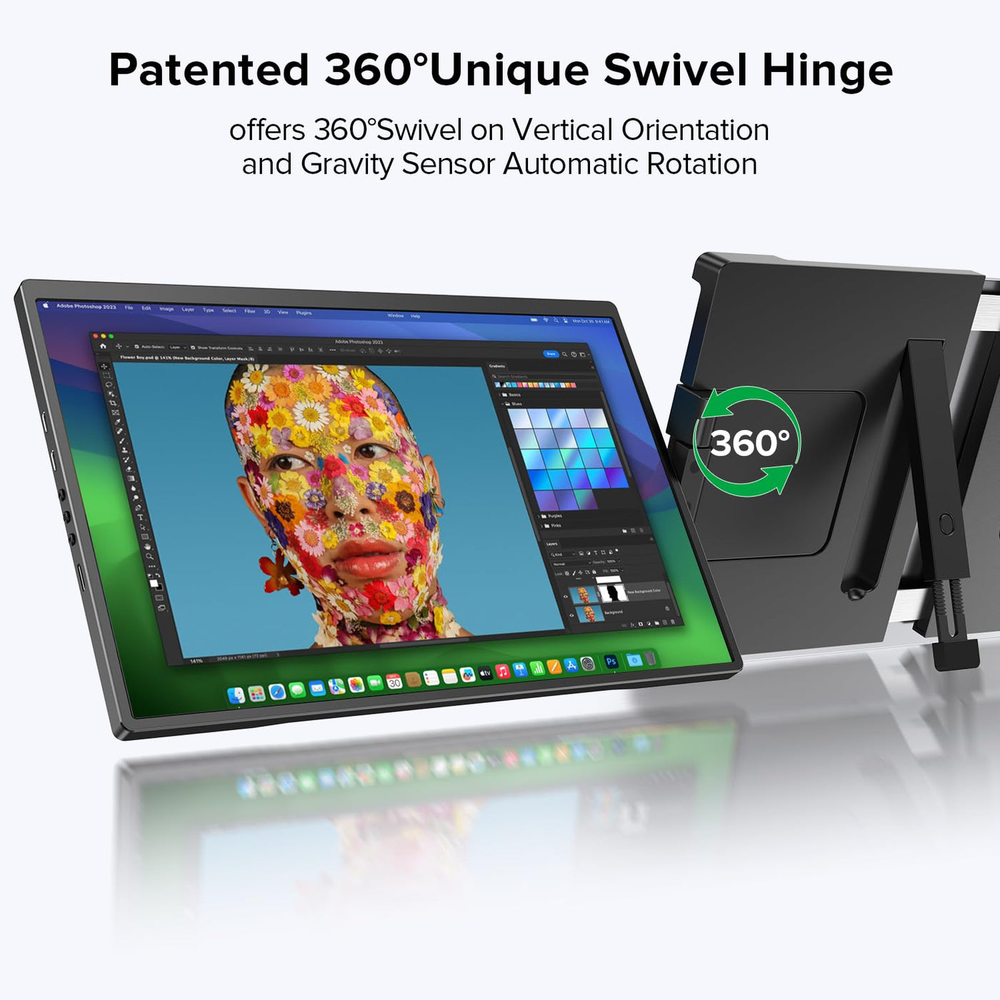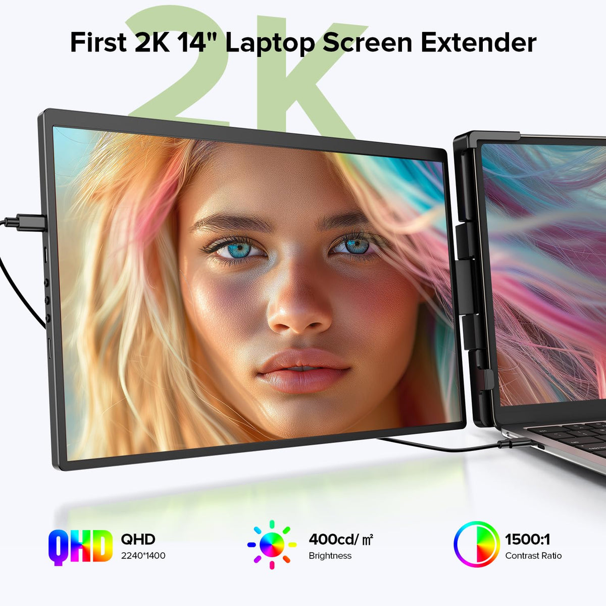 [First 2K 14'' Laptop Screen Extender]: The Uperfect Exclusively Features An Upgraded 2K Display With 2240 X 1400P Resolution, Which Is 2 Times Resolution Of Fhd Monitor, Resulting In Incredibly Sharp And Detailed Images. The Ips Technology Ensures That Colors Are Consistent And Accurate From Any Viewing Angle, Ideal For Color-Critical Work Such As Graphic Design, Photo Editing, Or Video Production. | [Patented Swivel Hinge Innovation]: The Uperfect Utilizes An Innovative Portable Laptop Screen Extender, The Only Swivel Attachable Monitor, With Its Patented Hinge Design Offers 360