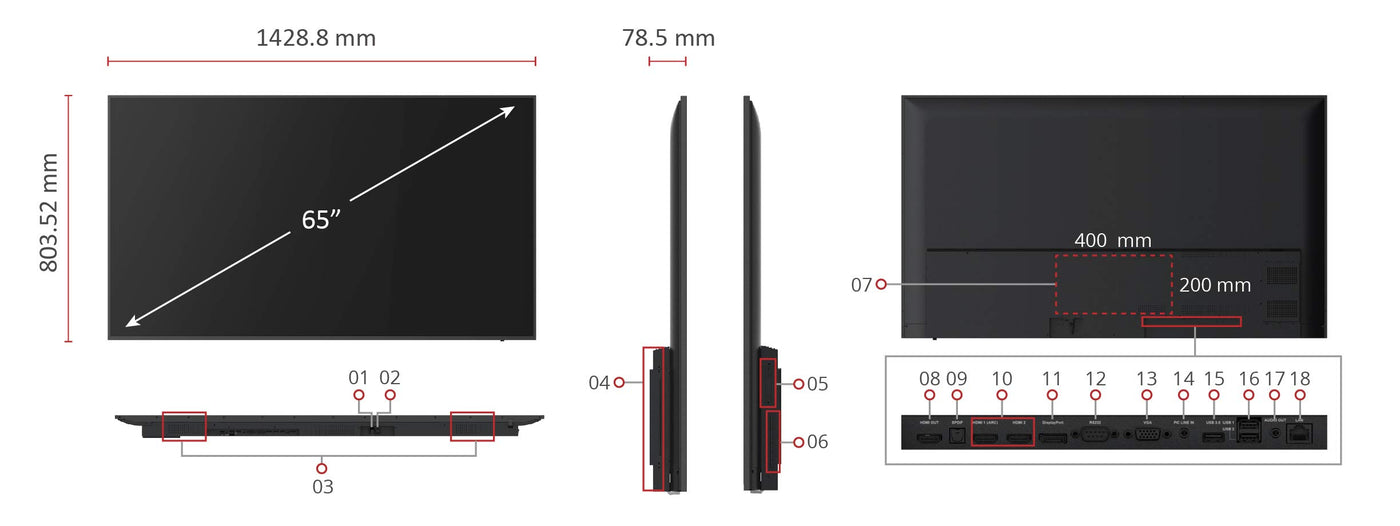 The Viewsonic Cde6520-W Is A 65'' Premium 4K Large Format Presentation Display. With Features Including A Razor-Sharp Resolution Of 3840 X 2160, 450-Nit High Brightness, 178-Degree Ultra-Wide Viewing Angles, 2 X 16W Speakers, And Wireless Screen Sharing, The Cde6520-W Transforms Meeting Rooms Into A Dynamic Communications Hub. The Built-In Viewboard Screen Sharing Software*, Viewboard Cast (Along With The Optional Viewsonic Vcastsender App), Enables Both On-Site And Online Users To Participate In Conferences And Simultaneously Share Content. Equipped With Twin Dual-Core Processors, 3Gb Ram, And 16Gb Of Internal Memory, The Cde6520-W Can Play Multimedia From Internal Storage Or A Usb Flash Drive 24 Hours A Day, Seven Days A Week. And With Remote Configuration And Content Management System Support, The Viewsonic Cde6520-W Is Also Suitable For A Wide Array Of Diverse Signage Applications. *Chrome, Android, Windows, Mac Os, And Ios Compliant