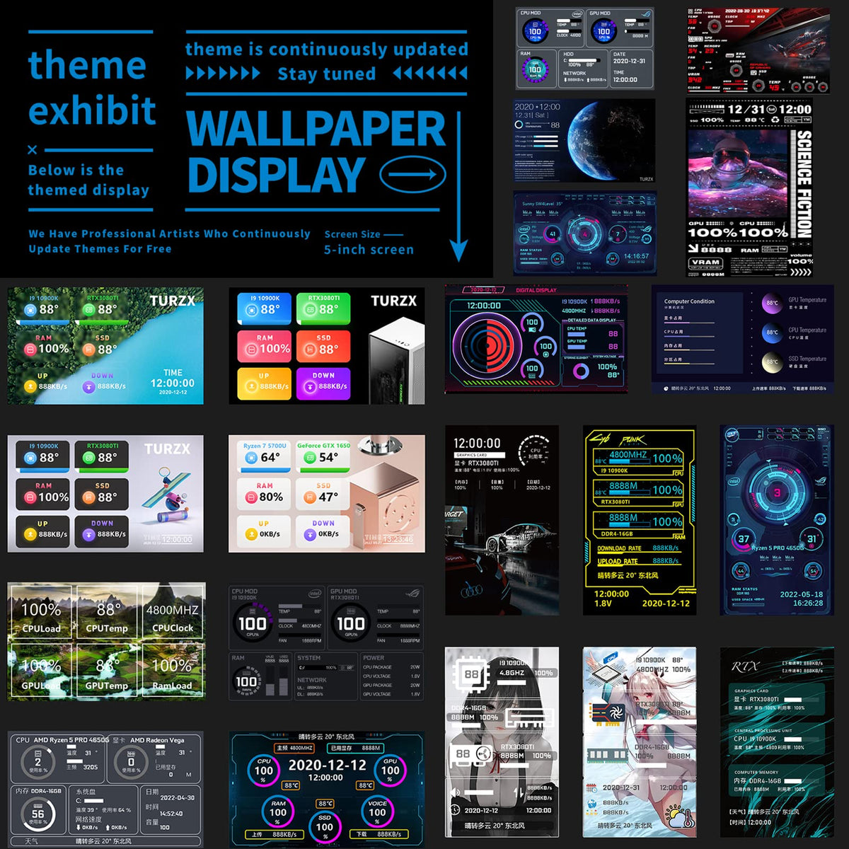 Wownova 5'' Computer Temp Monitor (Dynamic Theme Supported), Pc Temperature Display, Pc Sensor Panel For Pc Argb Computer Case,
