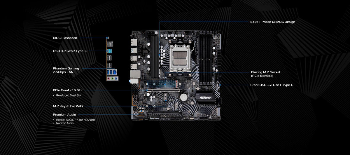 Asrock B650M Pg Lightning Amd Socket Am5 Ryzen9000/8000/7000 Series Processors Ddr5 7200+ Mhz (Oc) Hdmi Displayport B650 Micro A