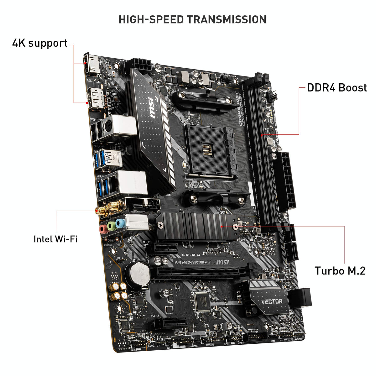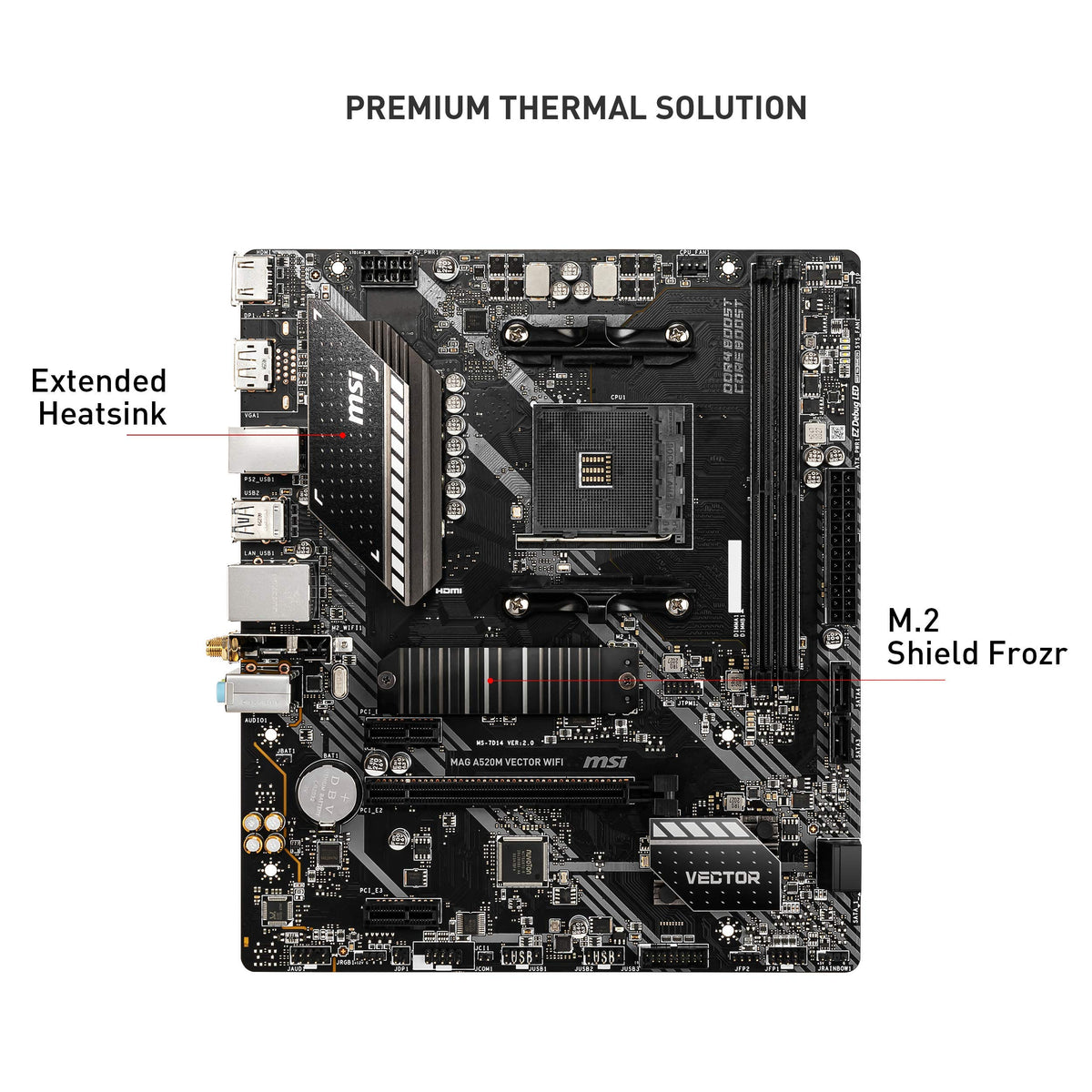 Msi Mag A520M Vector Wifi Gaming Motherboard (Amd Am4, Ddr4, Pcie 3.0, Sata 6Gb/S, 1* M.2, Usb 3.2 Gen 1, Hdmi/Dp, Wifi 5, Micro