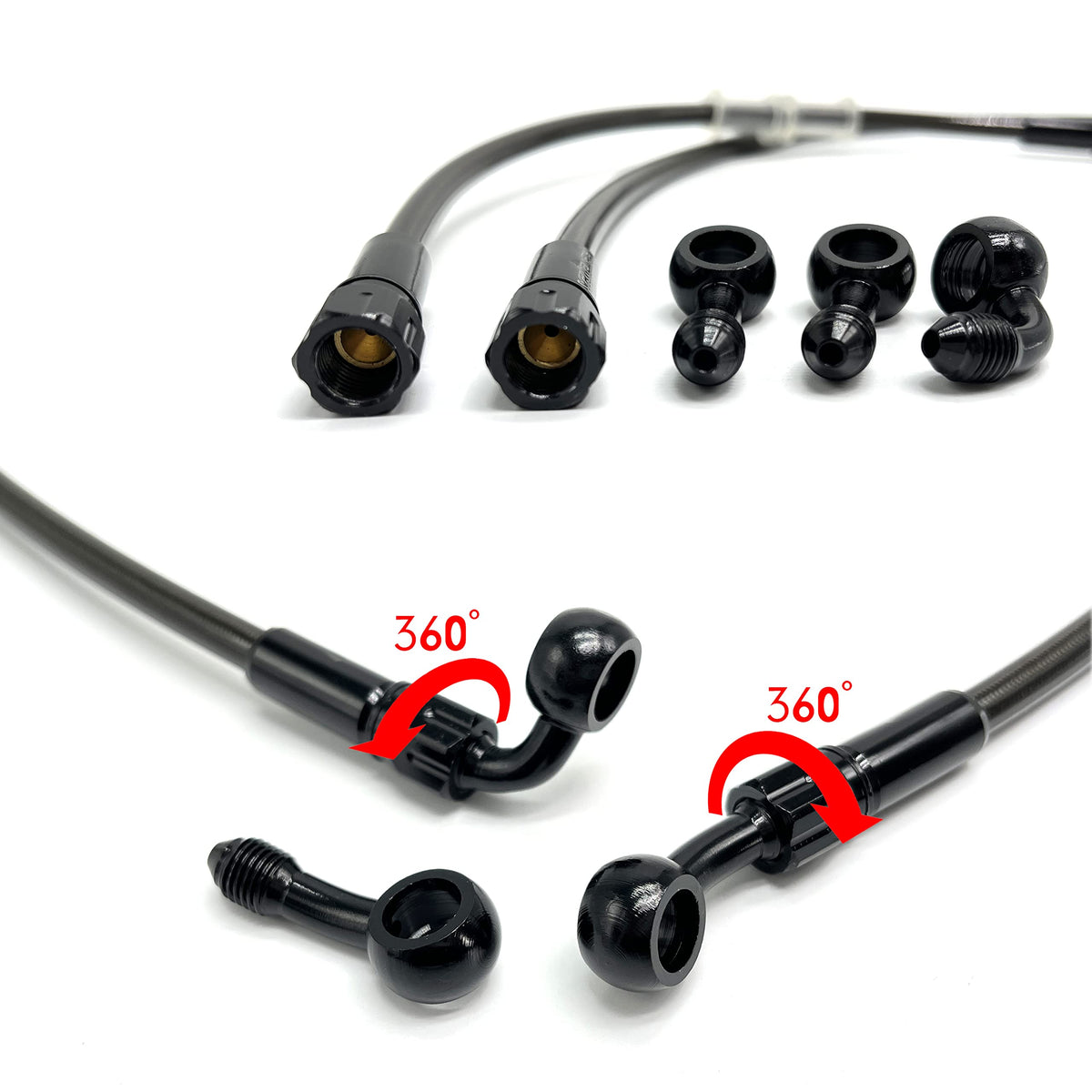 Vrweare An3 28 90 Degree M10 Stainless Steel Braided Motorcycle Brake Hose Line Oil Pipe With 360 Degree Rotatable Banjo Fit For