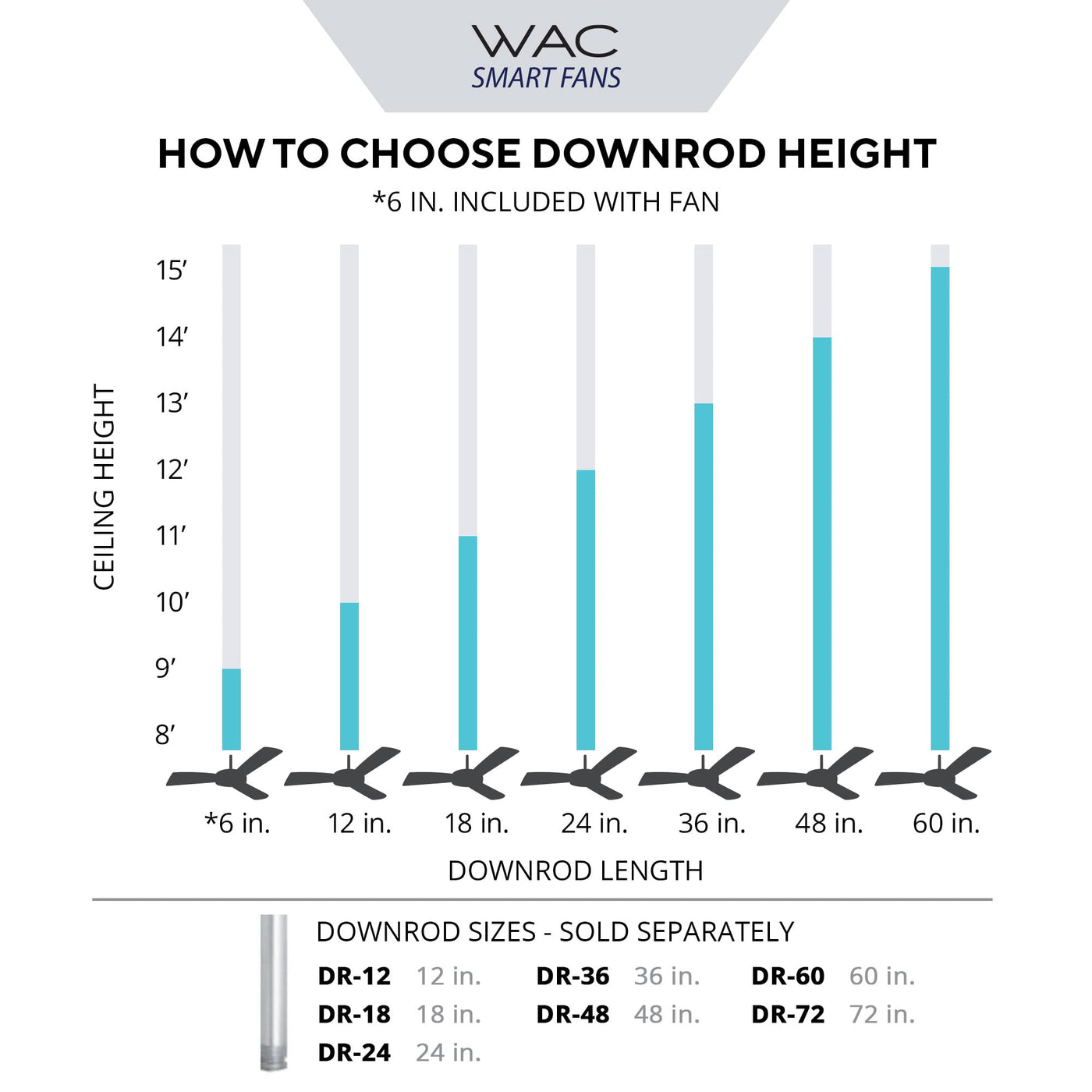 Wac Ceiling Fan Downrods Should Only Be Used With Wac Ceiling Fans. Our Downrods Are Manufactured To Work With Wac Fans Only, Failure To Use With A Wac Fan Only Can Result In Damage Or Injury. Wac Downrods Are 3/4 In. Outter Diameter And Can Be Used To Extend Your Wac Ceiling Fan Height. Downrods Are Available In 12In, 18In, 24In, 36In, 48In, 60In, And 72In In A Variety Of Finish Options To Match Your Fan Finish. Downrods Can Also Be Joined Together Using A Downrod Coupler (Dc-Xx) To Create Lengths Greater Than 72In. All Wac Downrods Have A Single Threaded End On The Motor Side And Can Be Shortened In The Field By Cutting The Un-Threaded Side, For Instance If You Need A 10In Downrod You Can Purchase A 12In And Field Shorten It By 2In.