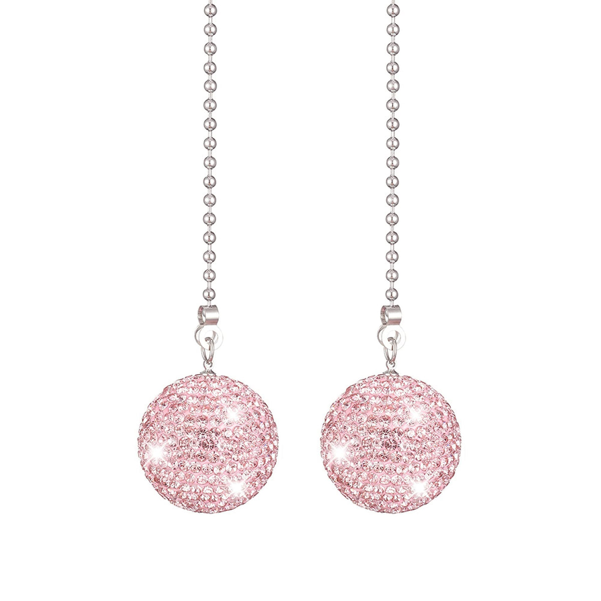 2 Pieces Light Rose Rhinestone Clay Beads Pull Chain Rhinestone Ball Pull Chain Extension For Ceiling Fan Light Pendant Decorati