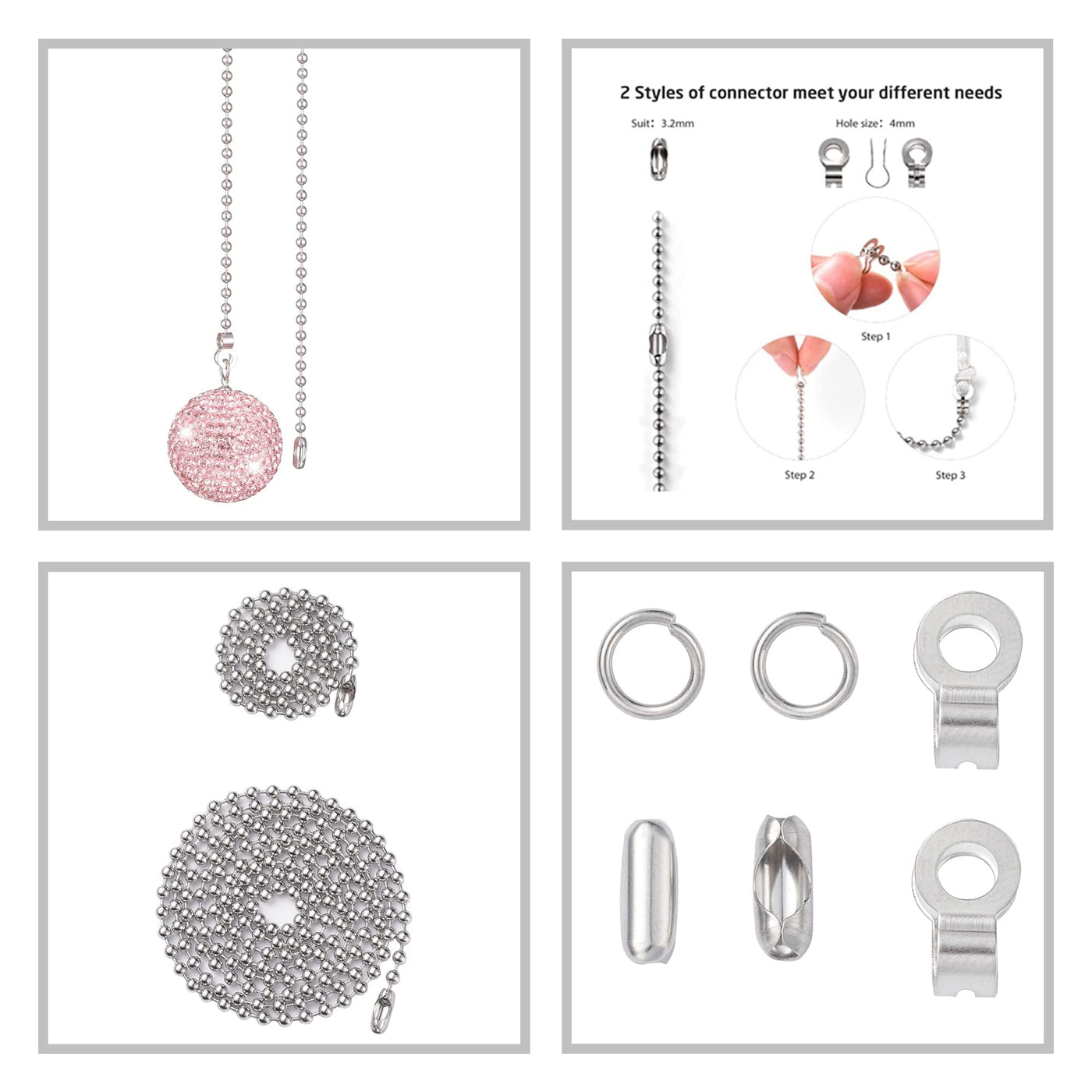 Features: 1. Crystal Ball Pull Chain Set: Our Absolutely Beautiful And Classy Pull Chain Set Will Add Chic To Your Ceiling Fan And Light. The Pack Includes 2X Rhinestone Ball Pull Chain Set. Each Set Comes Assembled And Has 1X Crystal Ball, 1X Connector, 1X 30 Centimeter Ball Chain. There Are Two Extra Connectors Included In The Package. 2. Elegant Design: The Design Is Sophisticated Yet Practical. The Rhinestone Ball Is Durable And Will Add Beauty To Any Fan Light Or Ceiling Fan You Will Connect It To. 3. Convenient To Use: You Can Combine The Two Sets Or Use It Separately. The Pull Extenders Of Each Set Can Make The Original Cords Of Either Your Ceiling Fan Or Light Longer And Easy To Reach. 4. Easy To Connect: You Are Free To Customize And Choose The Preferred Length By Simply Cutting The Chain. The Extra Chain Is 90 Centimeter Long And Will Allow You To Make Changes As You See Fit. 5. Multiple Uses: It Is A Good Addition To Home Decorations. Perfect For Every Ceiling Fan And Light In Your Home. Recommended For Your Living Room, Playing Rooms, Bedrooms And Even For Dining Rooms. Specification: 1.Material: 304 Stainless Steel And Rhinestone 2.Length Of Pull Chains: 12 Inches 3.Diameter Of Rhinestone Ball: 35Mm 4.Length Of Extra Chains: 35.4Inch 5.Color: Light Rose Packing Includes: 2 X Crystal Ball Pull Chain Extension Kit (2X Crystal Ball, 2X Connector, 2X 30 Centimeters Ball Chain) 2 X 90 Centimeters Extra Chains 2 X Clasps
