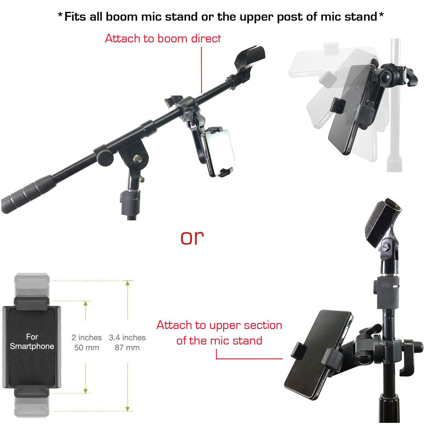 Accessory Basics Music Boom Mic Microphone Stand Smartphone Mount W/360� Swivel Adjust Holder For All Smartphones Up To 3.75 Inches Wide (Zoom Video Compatible)